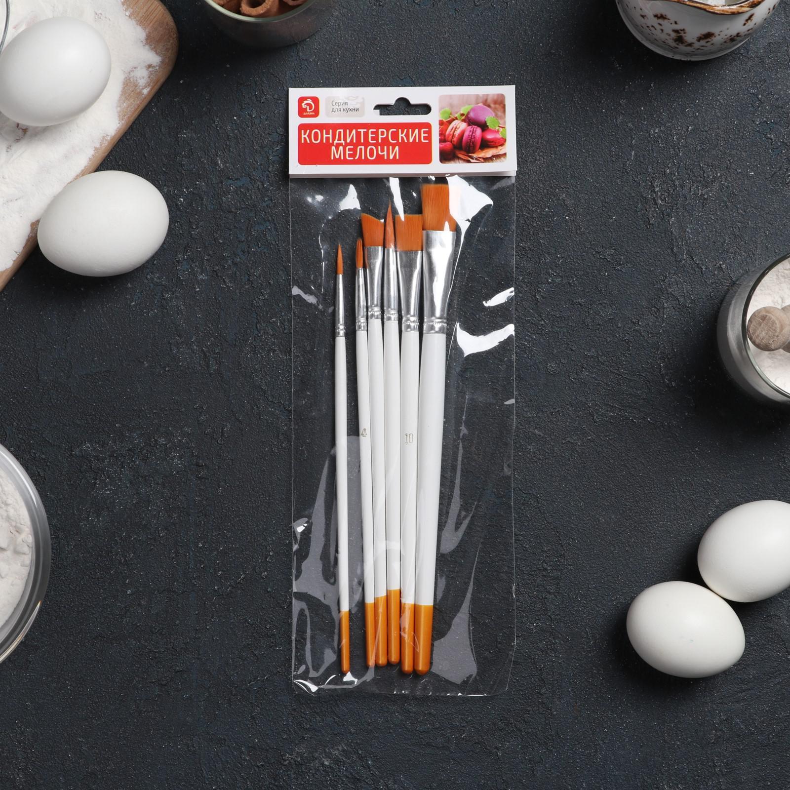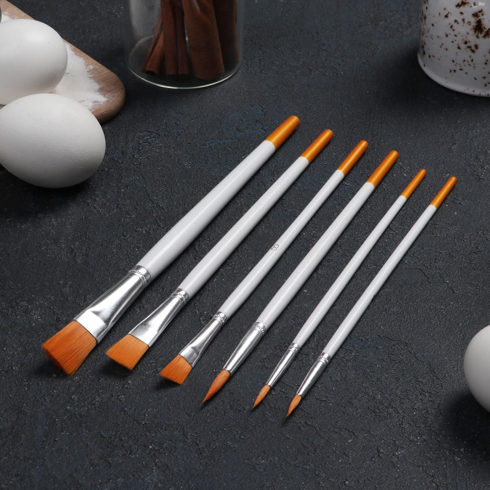 Набор кондитерских кисточек для декорирования доляна «ларсон», 6 шт. Цвет: Белый Цвет: Оранжевый Форма: Прямоугольная В наборе, шт.: 6 Тематика: Однотонная Материал: Нейлон Материал: Алюминий Материал: Дерево Для детей до 3 лет: Нет Вид: Кисти  развернуть описание ▼