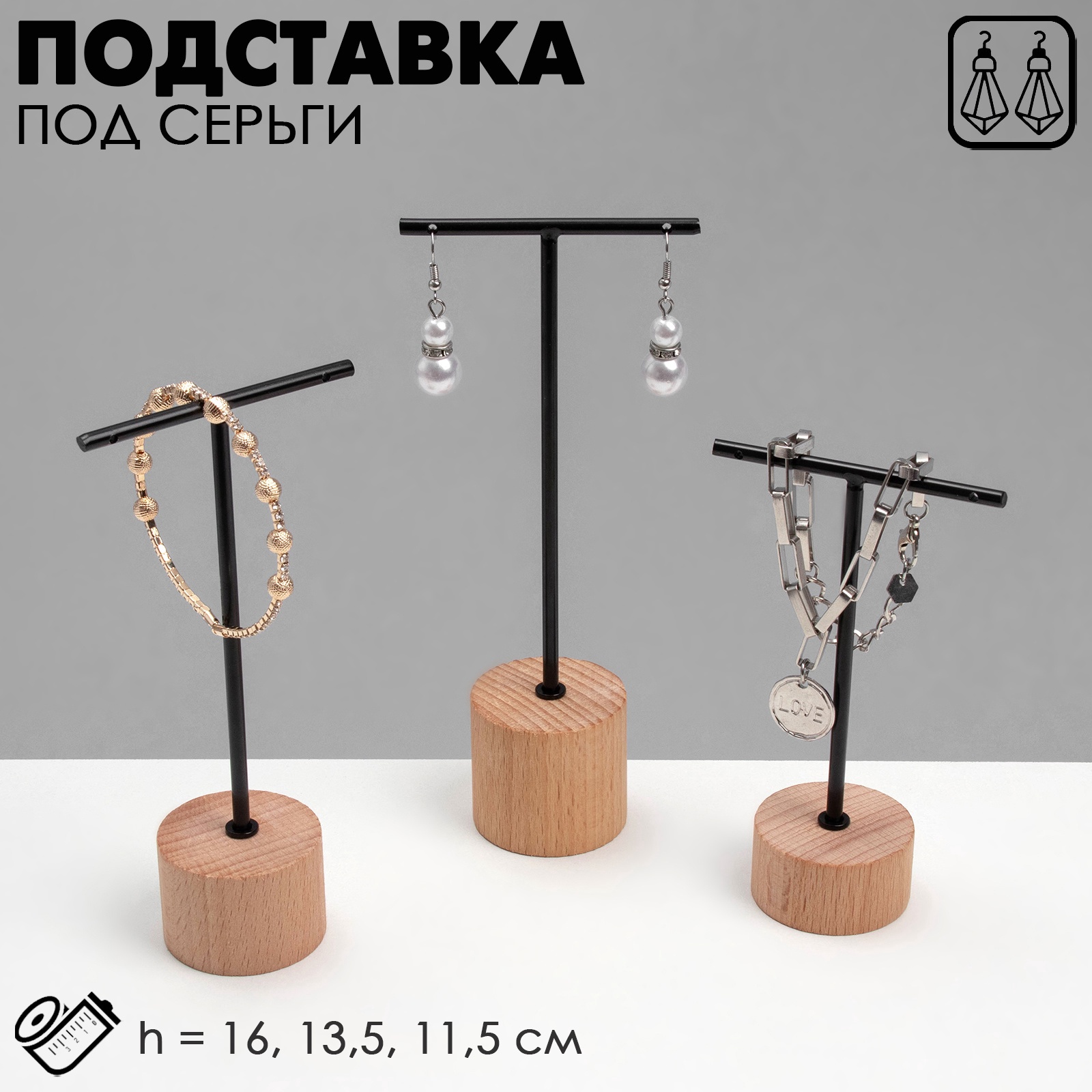 Подставка под серьги Qf т-образная, набор 3 шт., 16, 13.5, 11.5 см, чёрная