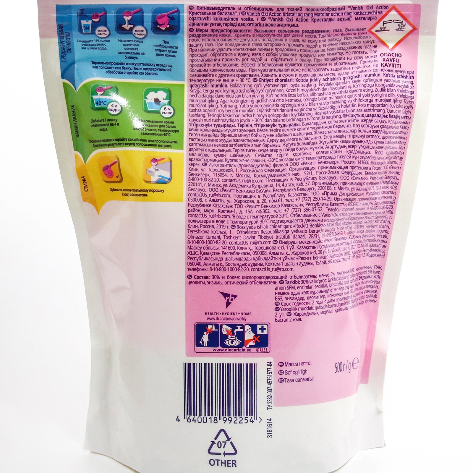 Отбеливатель Vanish Aquaman, порошок, для белых тканей, кислородный, 500 г