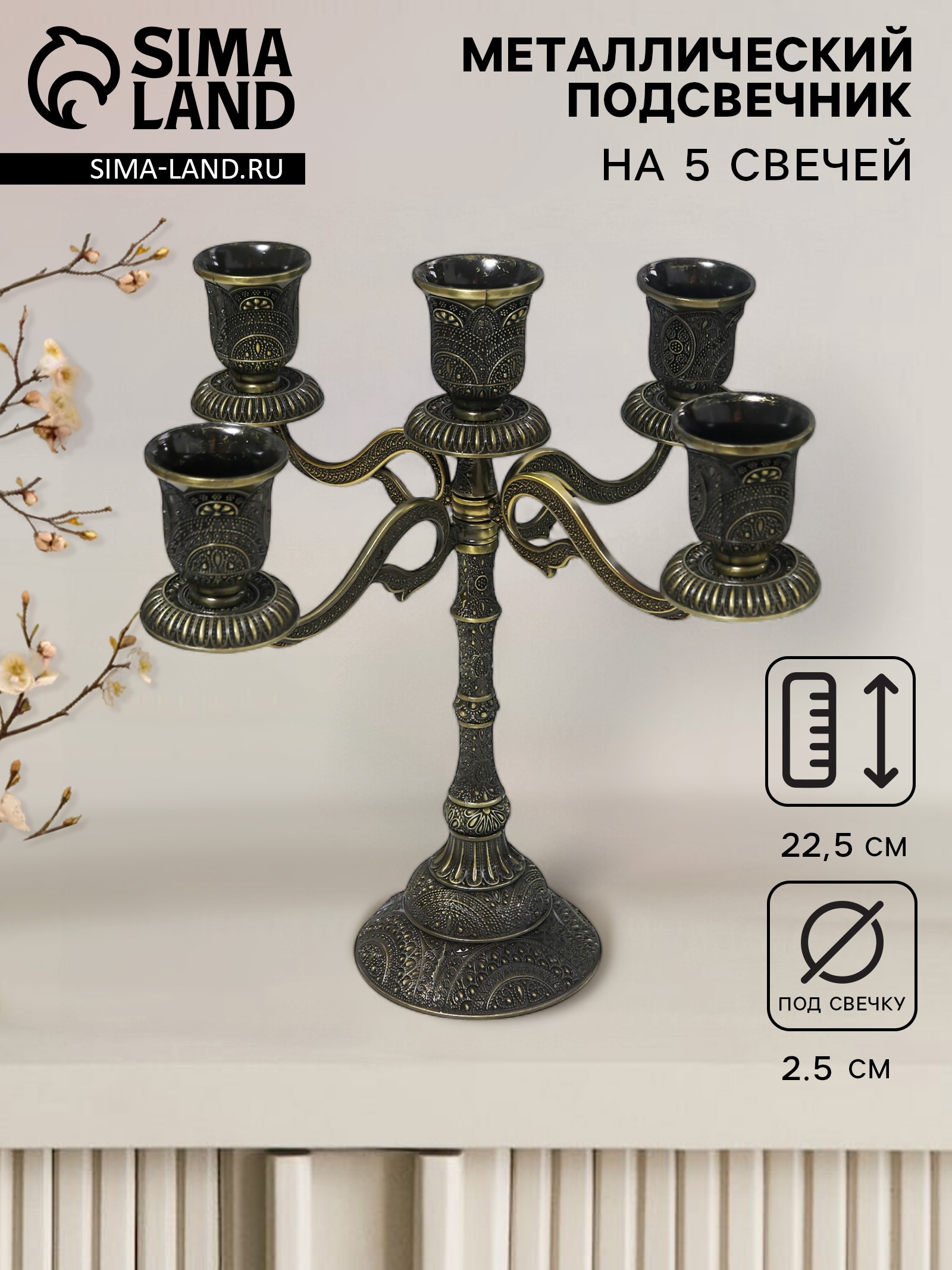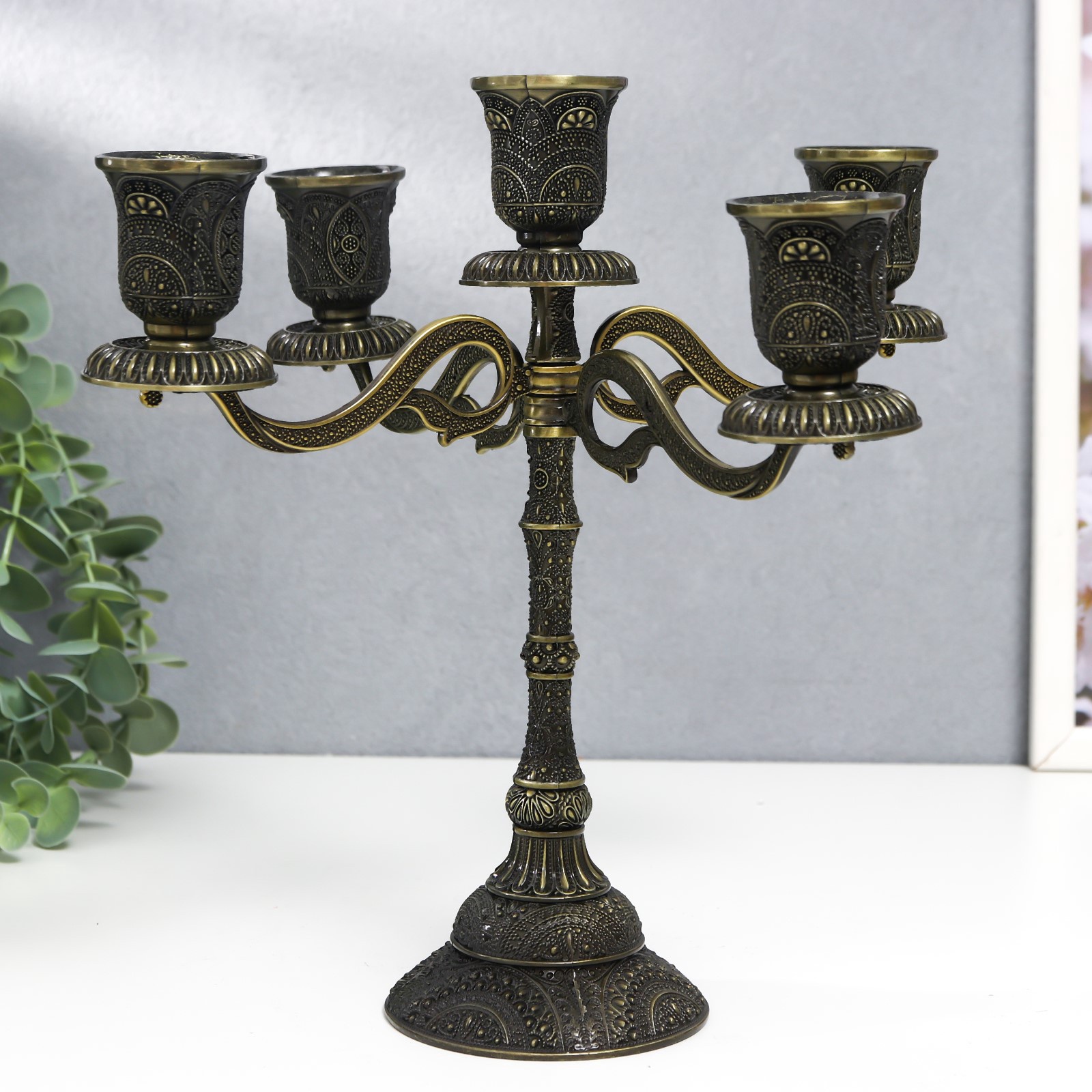 Металлический подсвечник на 5 свечей «канделябр. раджа», бронза, 22.5 23 23 см