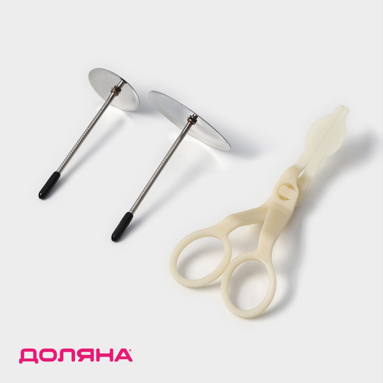 Набор кондитерский доляна, 3 предмета: гвоздь кондитерский D=3/5 см, ножницы кондитерские для переноски украшений, цвет микс