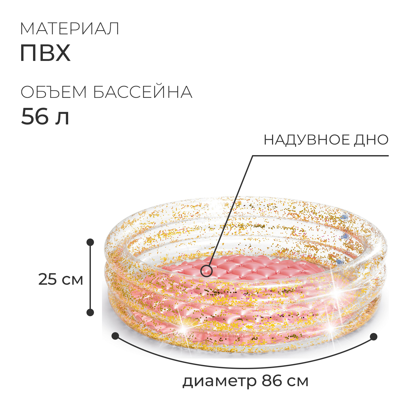 размеры: 86 х 25 см;объём 56 л;надувное дно;возраст: от 1 года.