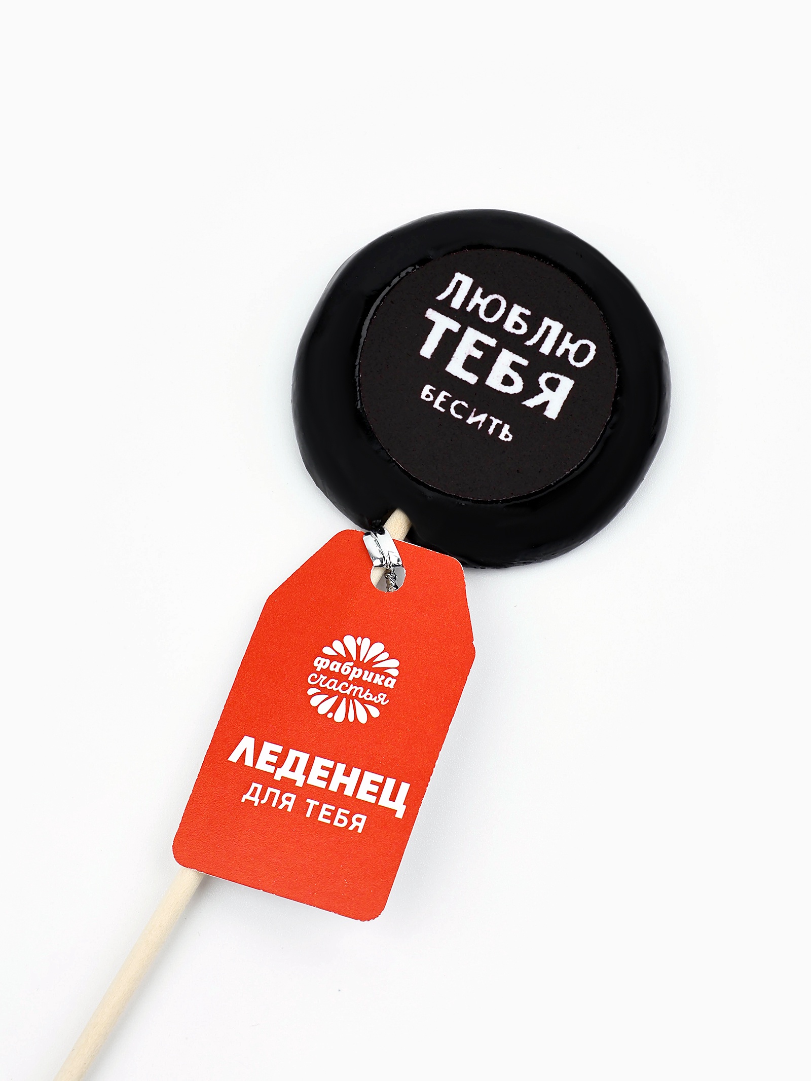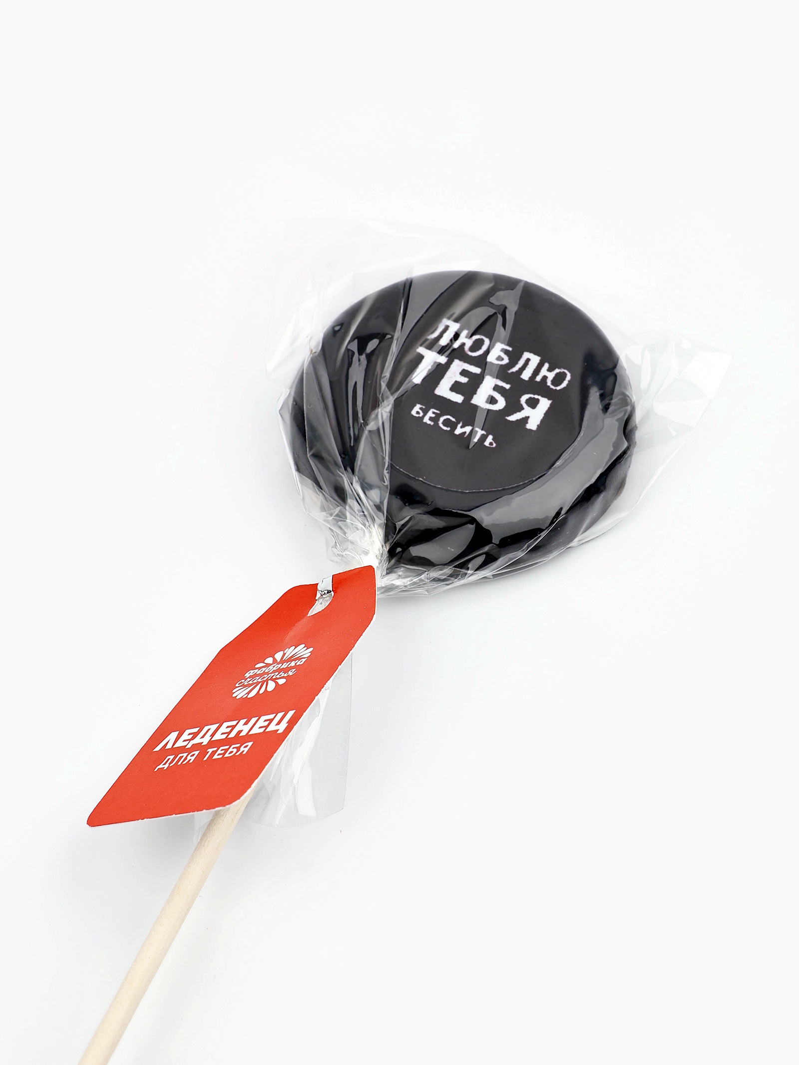 Леденец с печатью на палочке «люблю тебя», вкус: кола, 25 г.. При оформление заказа, просим запрашивать актуальные сроки годности у менеджераСостав: вода, сахар, патока, лимонная кислота, вафельная пищевая бумага, ароматизатор – кола, краситель - михром чёрный. Срок годности: 24 мес. Масса нетто: 25 г. Вес нетто, г:25|Тематика праздника:Универсальная тематика|Вкус:Кола|На палочке:Да|Темпер. ограничение НЕ ВЫШЕ :+25|Страна:Россия  развернуть описание ▼