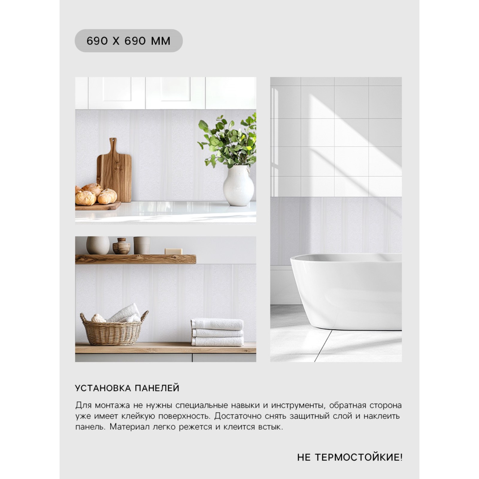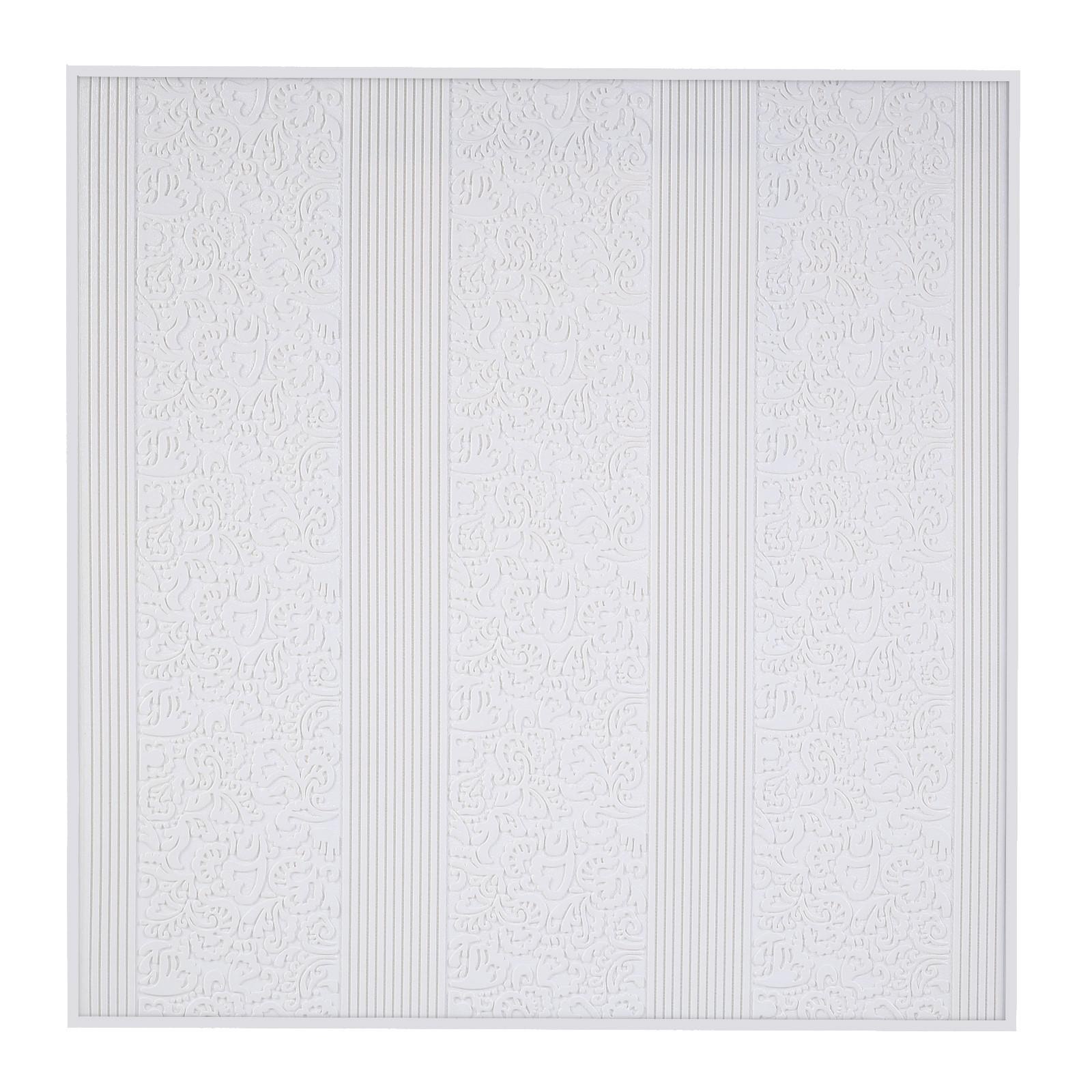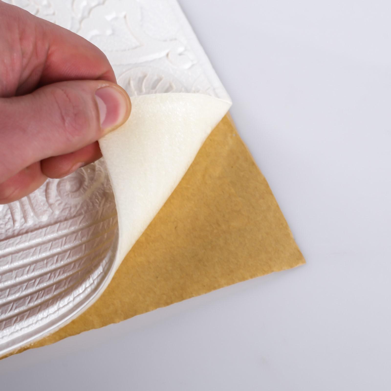 Панель пвх самоклеящаяся take it easy «узор», 690 690 мм, цвет белый. Самоклеющиеся ПВХ - панели: решение для быстрого ремонта Представляют собой простой и удобный материал для быстрой отделки помещений. Используют для обновления интерьера квартир, офисов и коммерческих объектов. Данный облицовочный материал позволяет быстро преобразить пространство, создать уют и освежить отделку стен. Преимущества самоклеющихся панелей Простота установки: монтаж панелей не требует специальных инструментов и опыта, так как одна сторона покрыта клеевым слоем.Влагостойкость: панели устойчивы к воздействию влаги, их можно успешно применять в кухнях и ванных комнатах.Легкий уход: поверхность панелей легко очищается мягкой губкой с нейтральными моющими средствами.Экономия времени: благодаря простоте наклеивания монтаж занимает минимум времени, позволяя быстро завершить ремонтные работы.ПрименениеРекомендации по установке и эксплуатации Не применяйте панели в местах с прямым контактом воды, таких как пол или зона готовки на кухне.Перед укладкой очистите стену от пыли и грязи, обработав спиртосодержащим раствором для удаления жирных пятен.Используйте дополнительный клей для ПВХ для усиления фиксации, особенно на сложных поверхностях.Избегайте чрезмерного натяжения при наклейке, иначе возможны деформации.Цвет:Белый|Длина, см:69|Ширина, см:69|Высота, см:70|Тематика:Абстракция|Одноцветный:Да|Подходит для ванной комнаты:Да|Страна:Китай  развернуть описание ▼