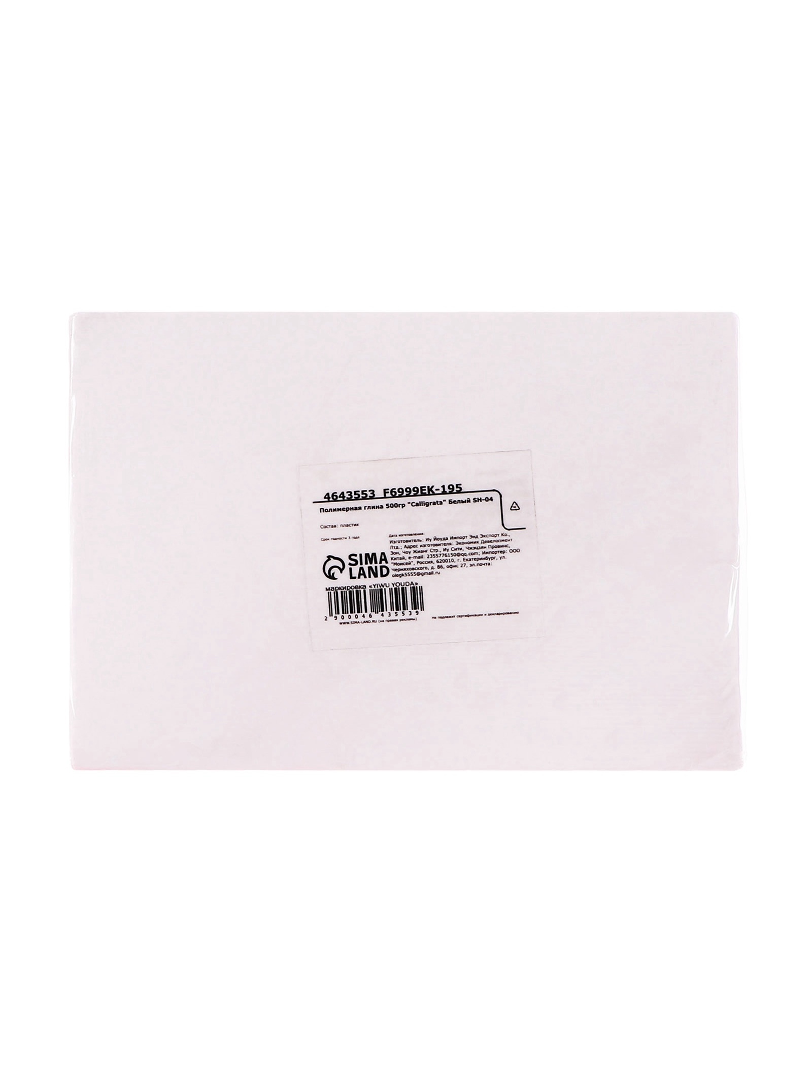 Полимерная глина 500 г calligrata, белый. Полимерная глина Calligrata, 250 г. пластичный материал для лепки, который с каждым годом становится всё популярнее. Вес 250г. Запекаемая полимерная глина, изделия из которой подвергаются термической обработке, после чего становятся твёрдыми, прочными и влагостойкими. Полимерная глина идеально подходит для лепки небольших изделий (украшений, скульптурок, кукол) и для моделирования Примечание: заломы и трещины допустимы. Набор:Нет|Количество цветов:1|Цвет:Белый|Европодвес:Нет|Вес, г:500|Особенности изделия:Запекаемое|Вид упаковки:Пакет|Температурное ограничение транспортировки:Нет|Страна:Китай  развернуть описание ▼