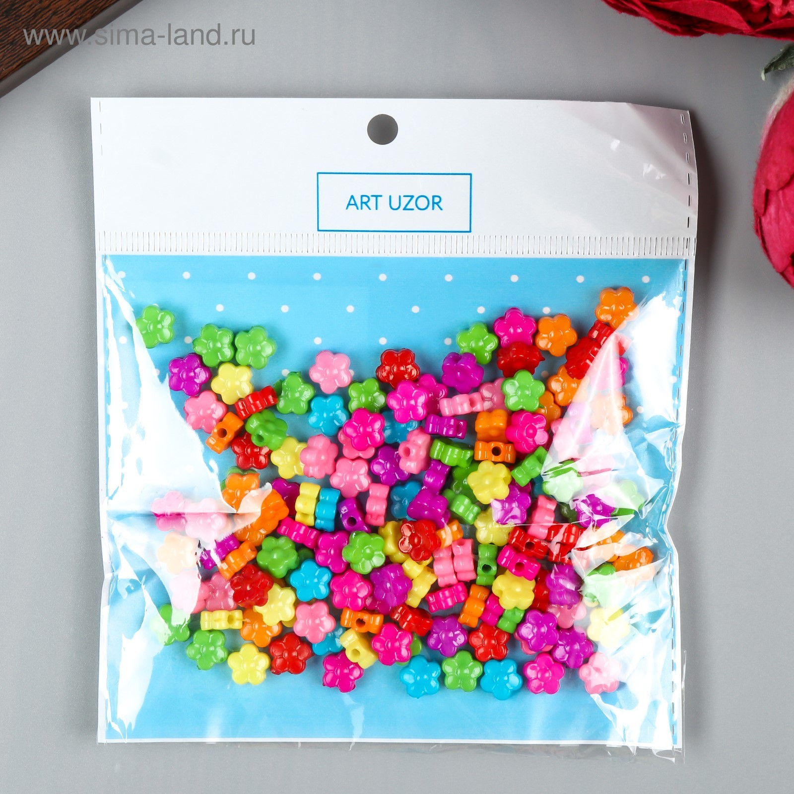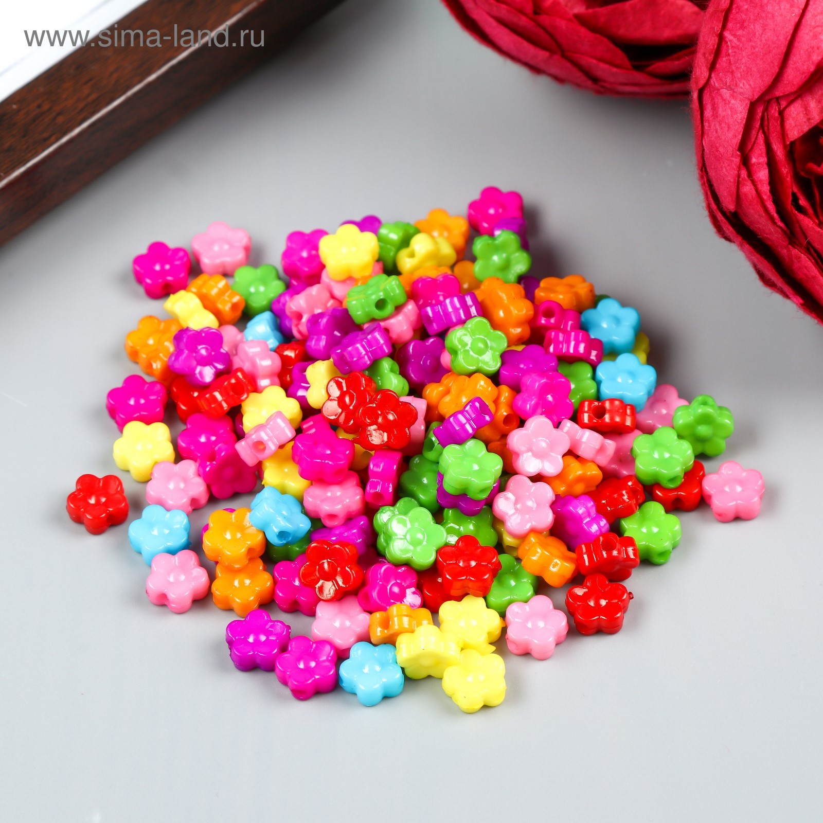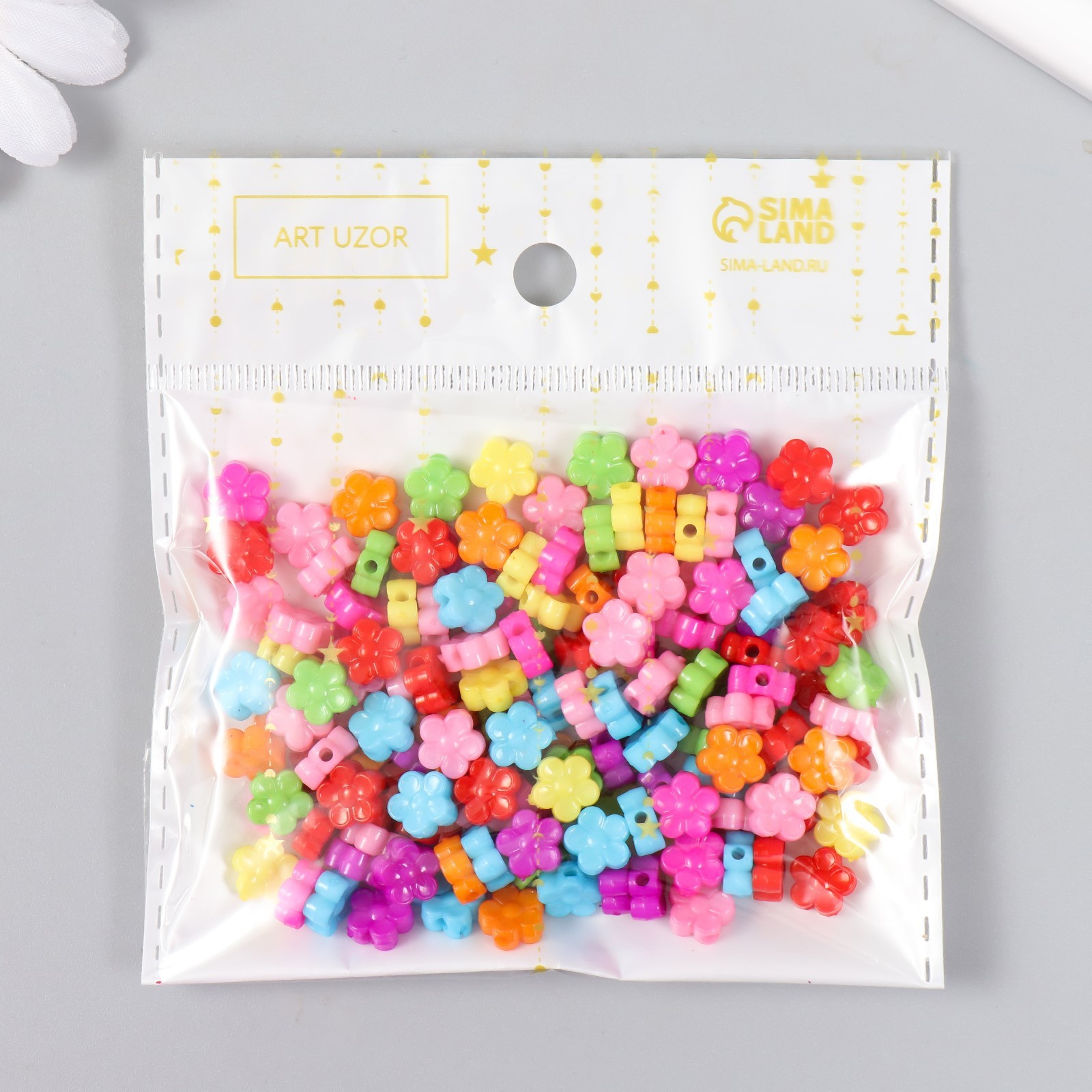 Бусины для творчества пластик «цветные микро цветочки», набор 150 шт., 0.4 0.9 0.9 см