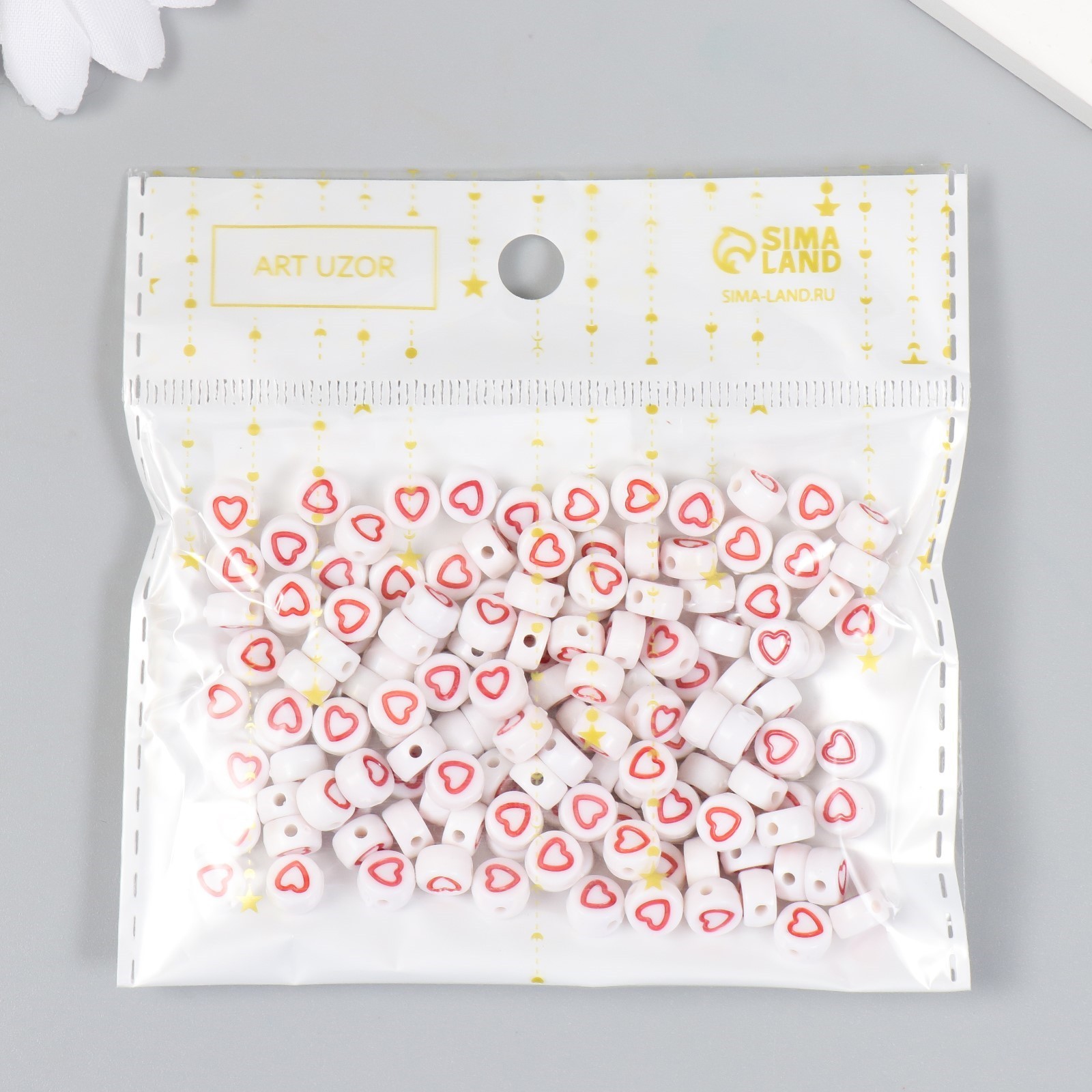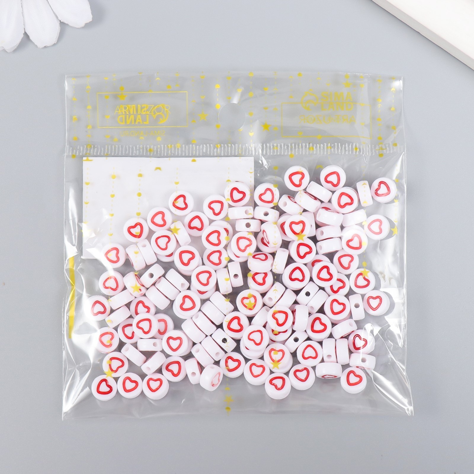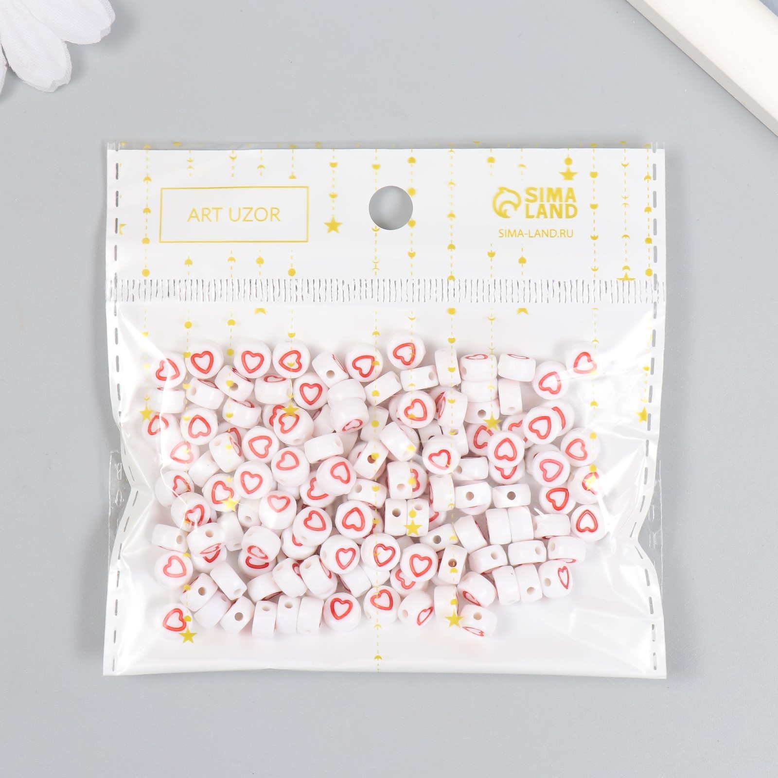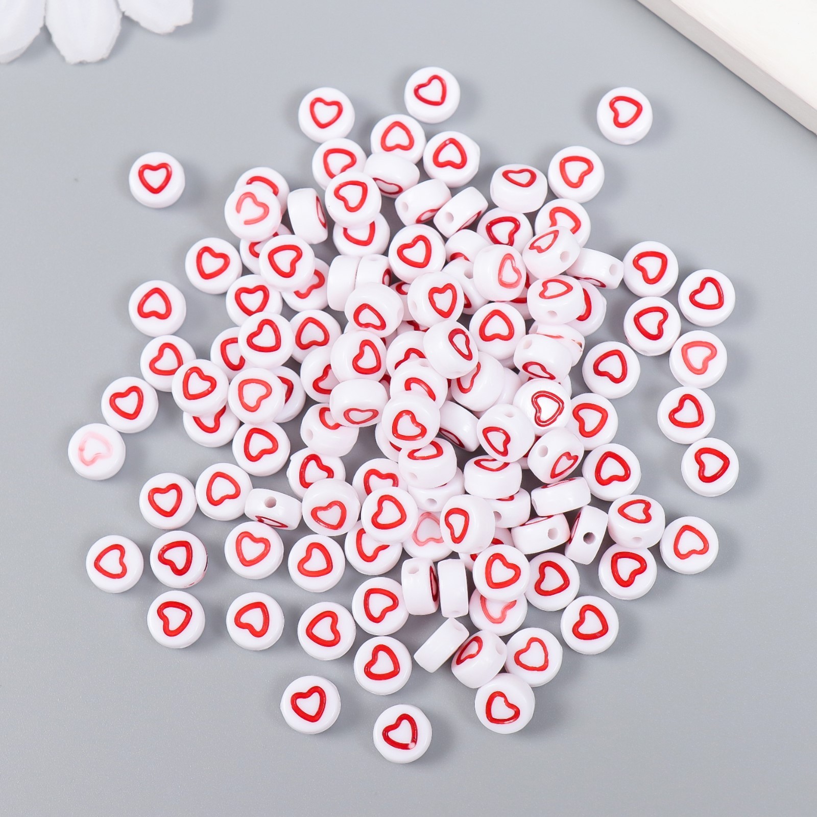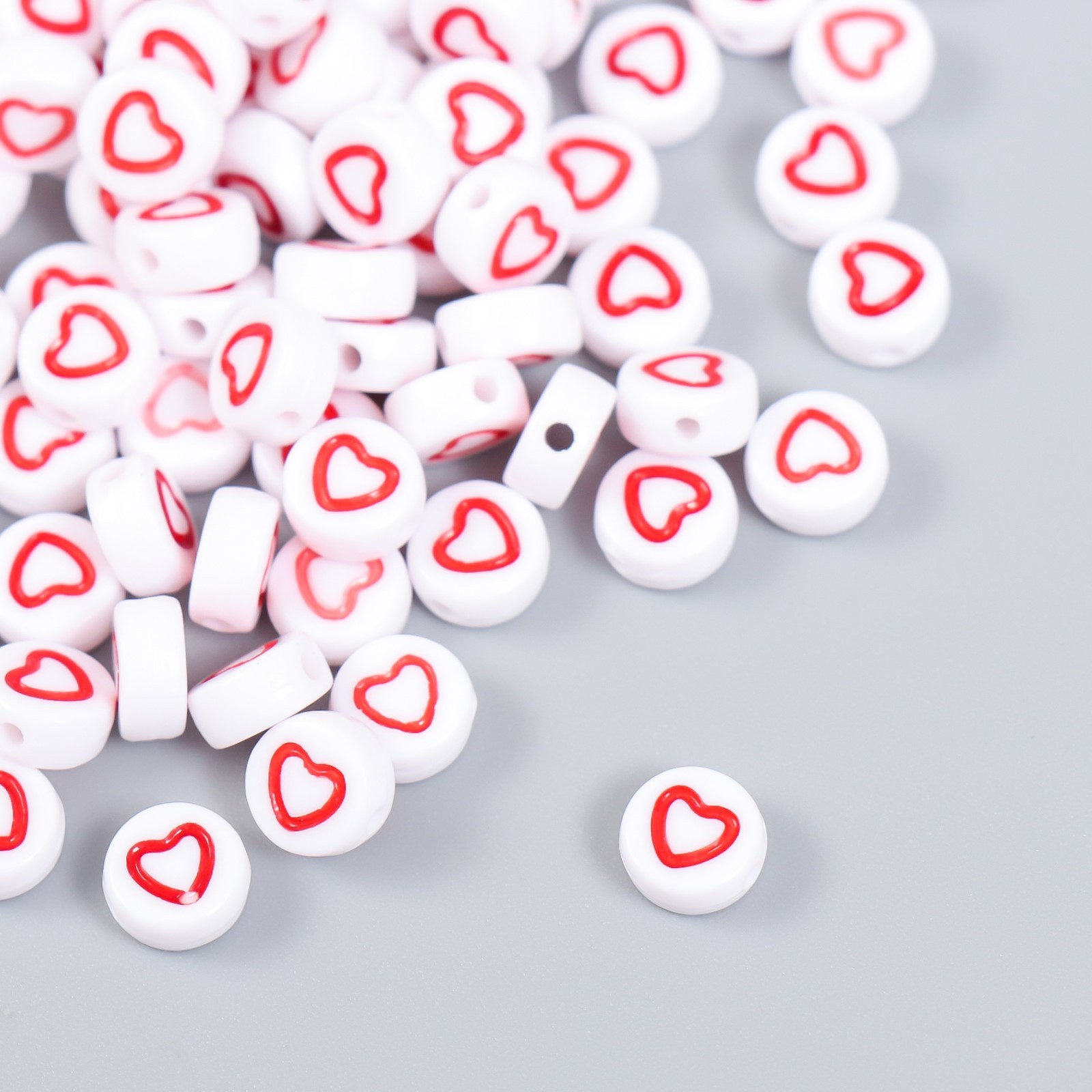 Набор бусин для рукоделия и плетения «арт узор. красное сердце с белой серединкой», 20 г, пластик, 0.7 0.7 0.4 см