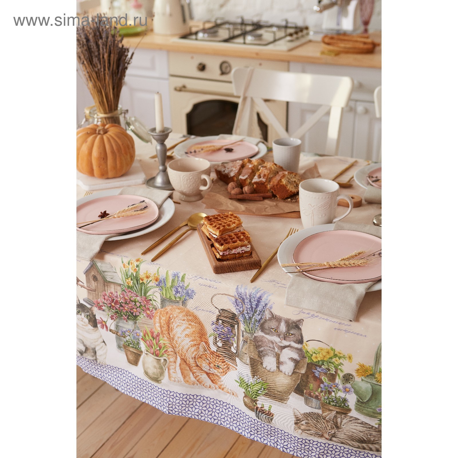 Скатерть "этель" уютные коты180х147 см, 100% хлопок, саржа 190 г/м2