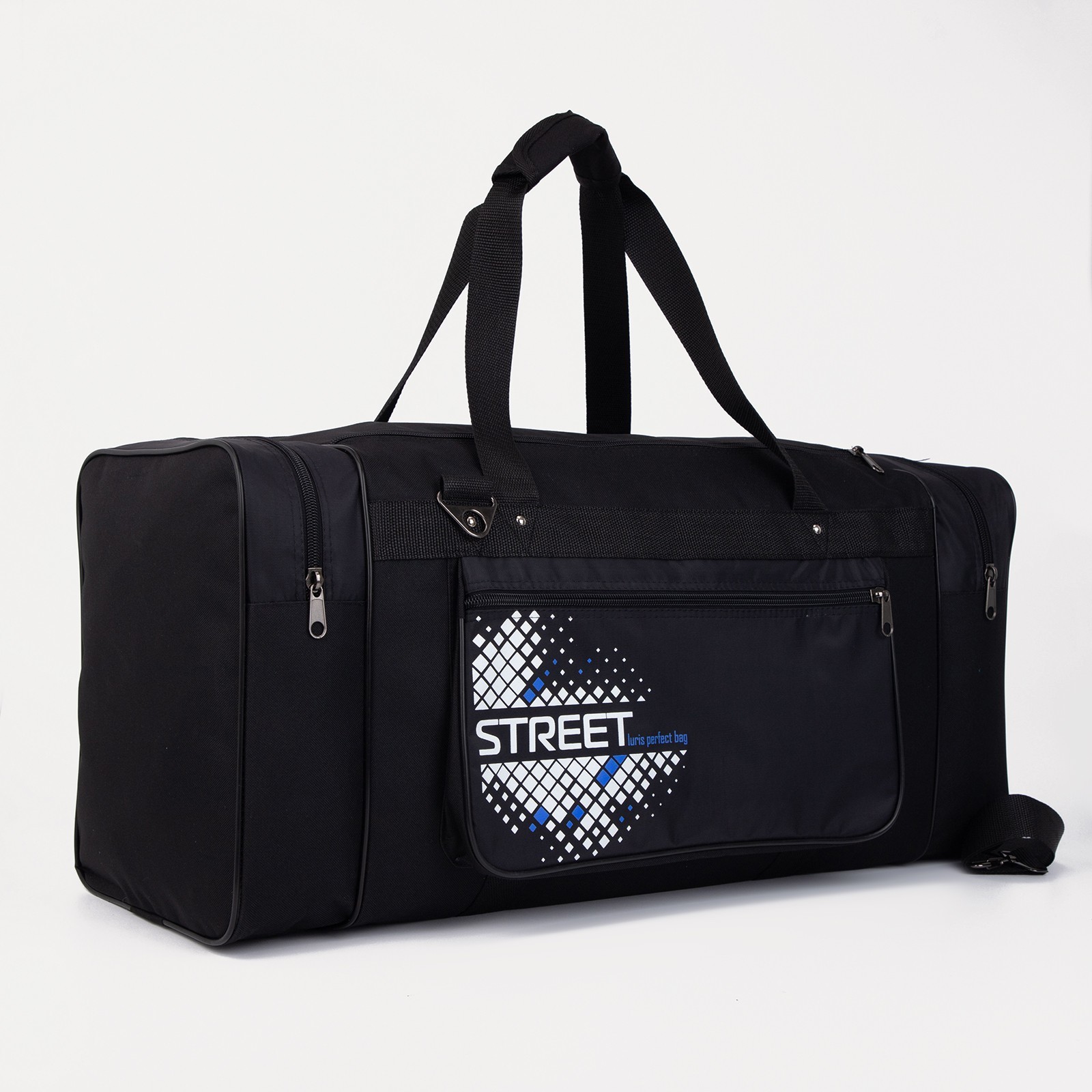 Сумка дорожная, 3 отдела на молниях, наружный карман, длинный ремень, цвет чёрный