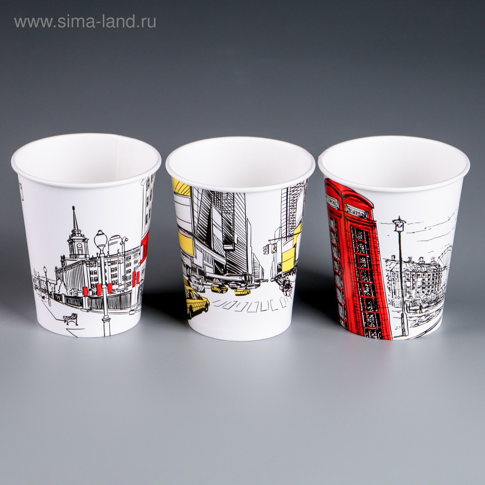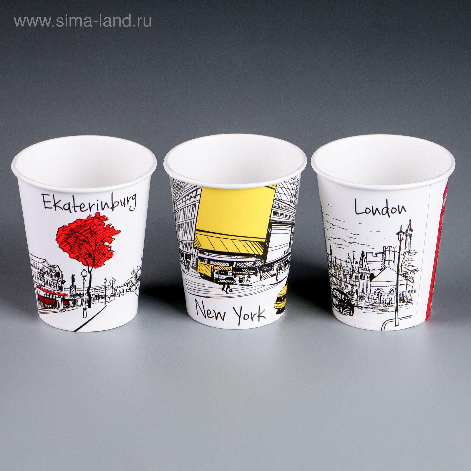 Стакан бумажный "города" для горячих напитков, 250 мл, цветной, диаметр 80 мм микс