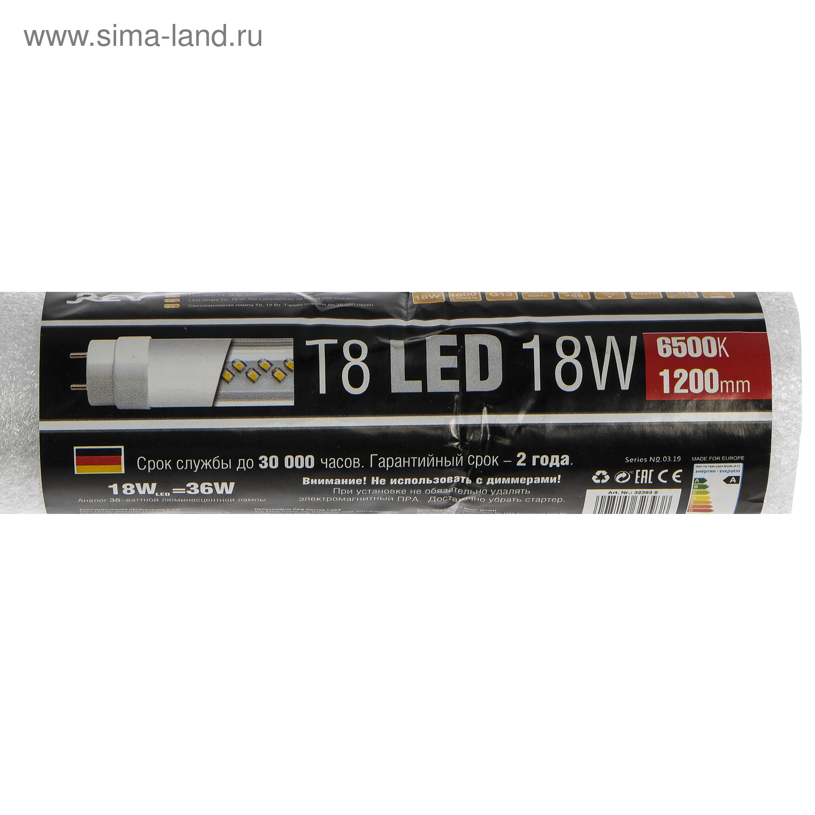 Лампа светодиодная Rev Led, т8, G13, 18 вт, 6500 к, 1200 мм, холодный свет