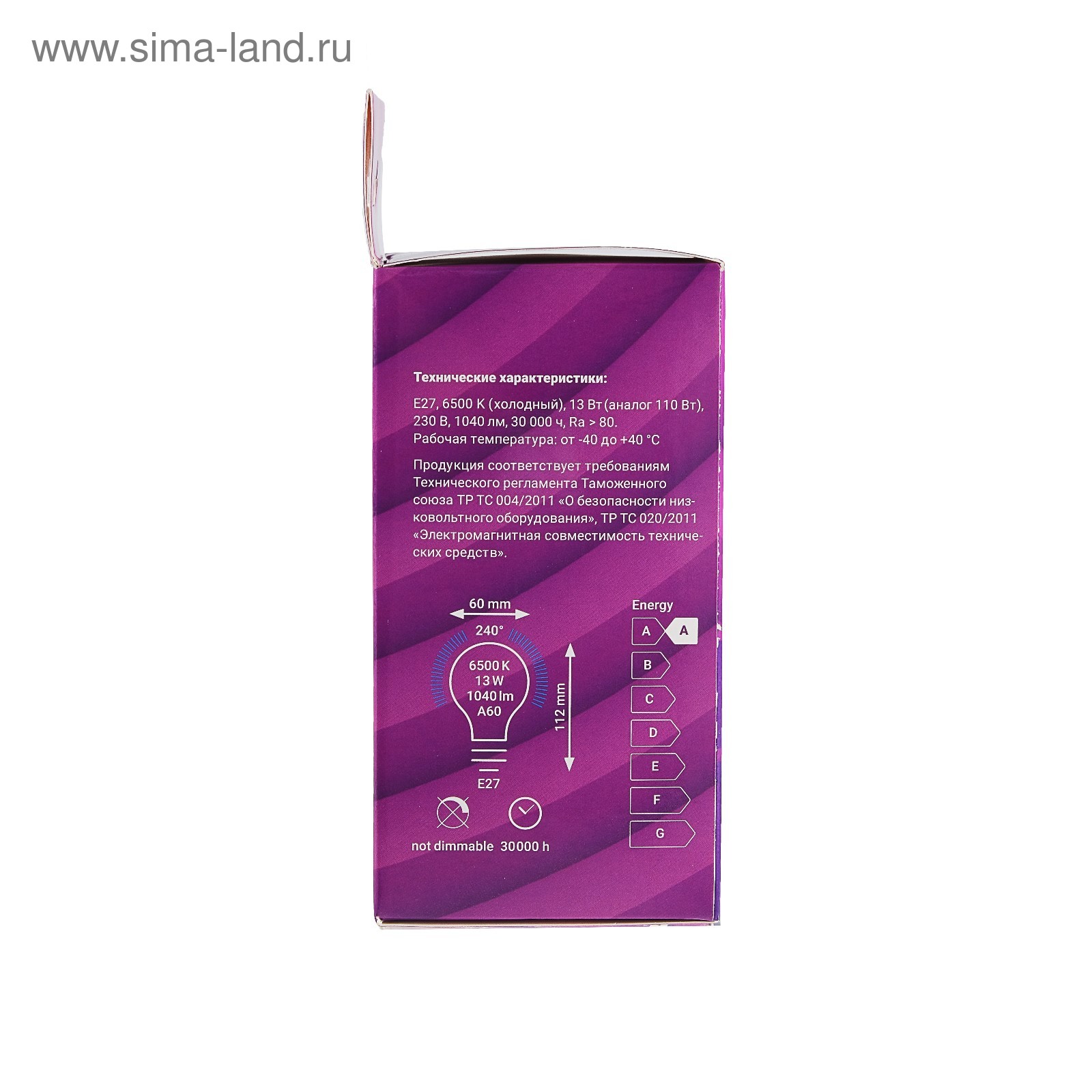 Лампа светодиодная Rev Led, е27, A60, 13 вт, 6500 K, дневной свет