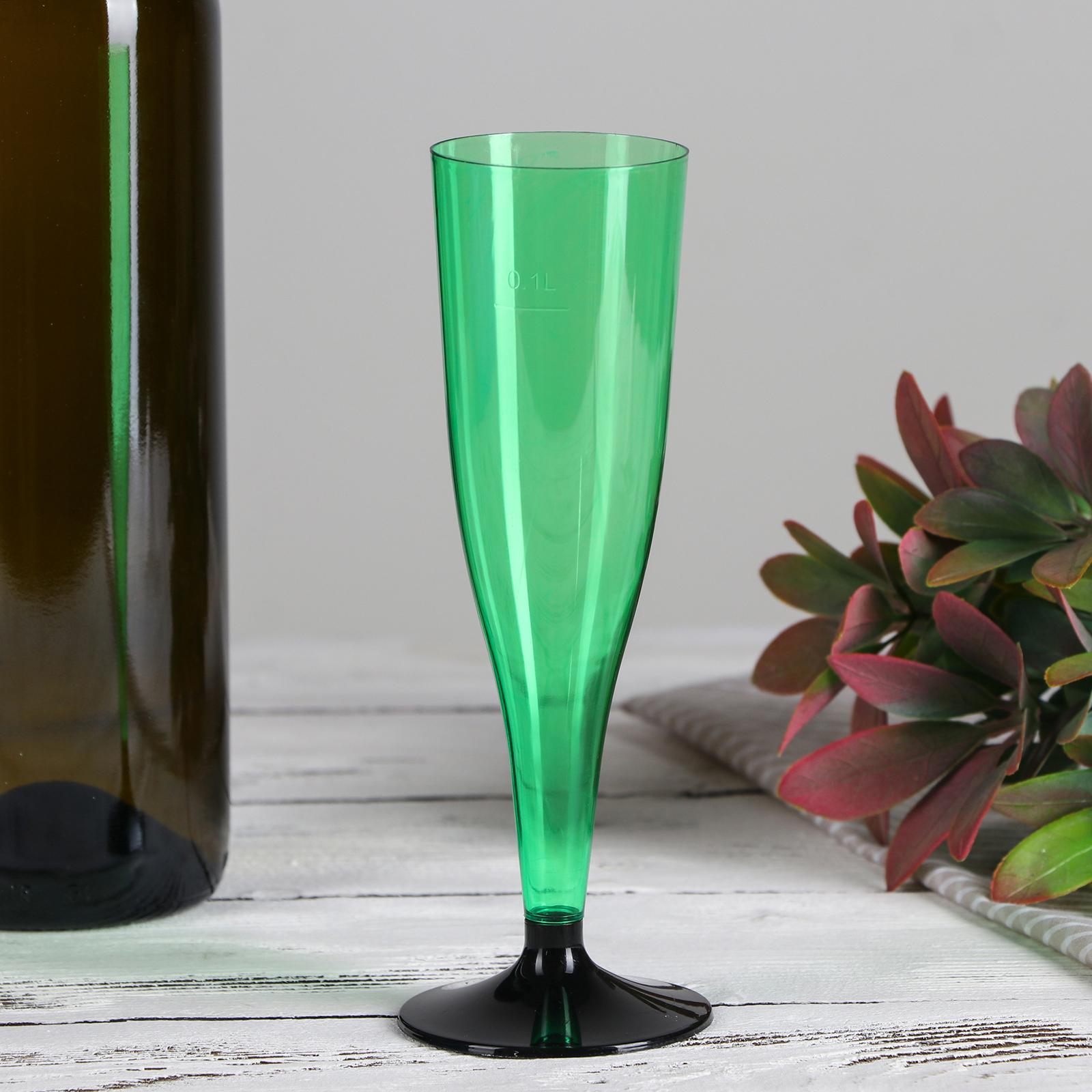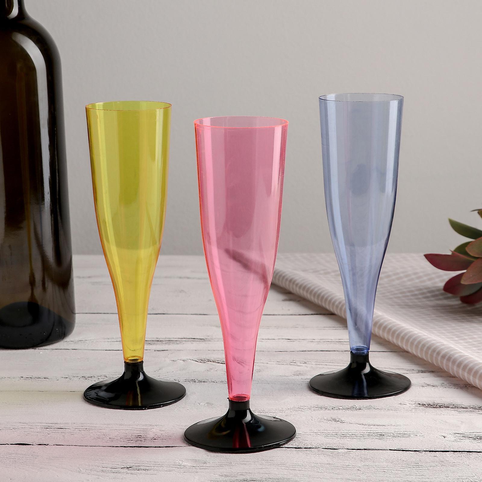 Бокал пластиковый одноразовый для шампанского «флютэ», 100 мл, 6 шт/уп, цвет микс