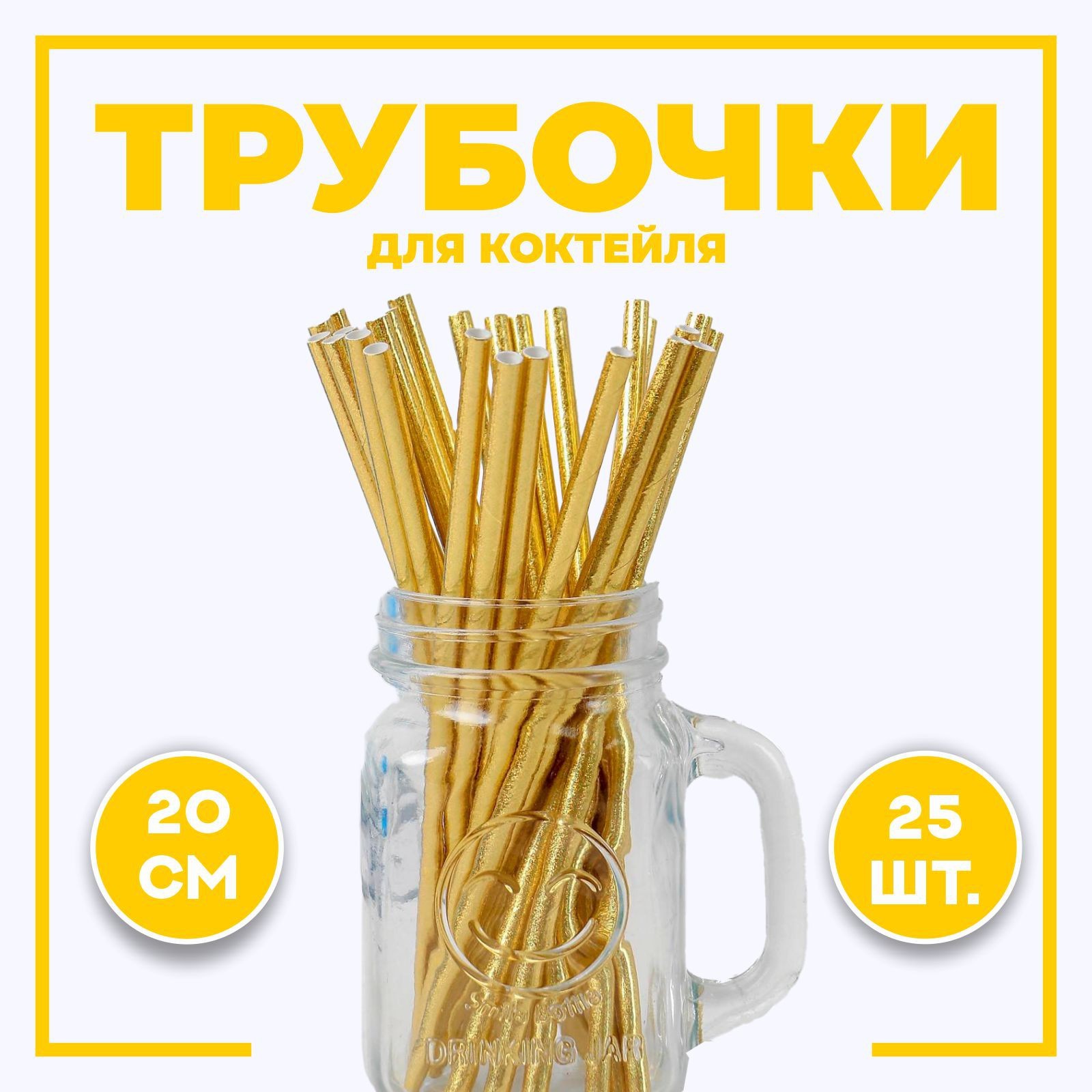 Трубочки для коктейля, набор 25 шт., цвет золотой
