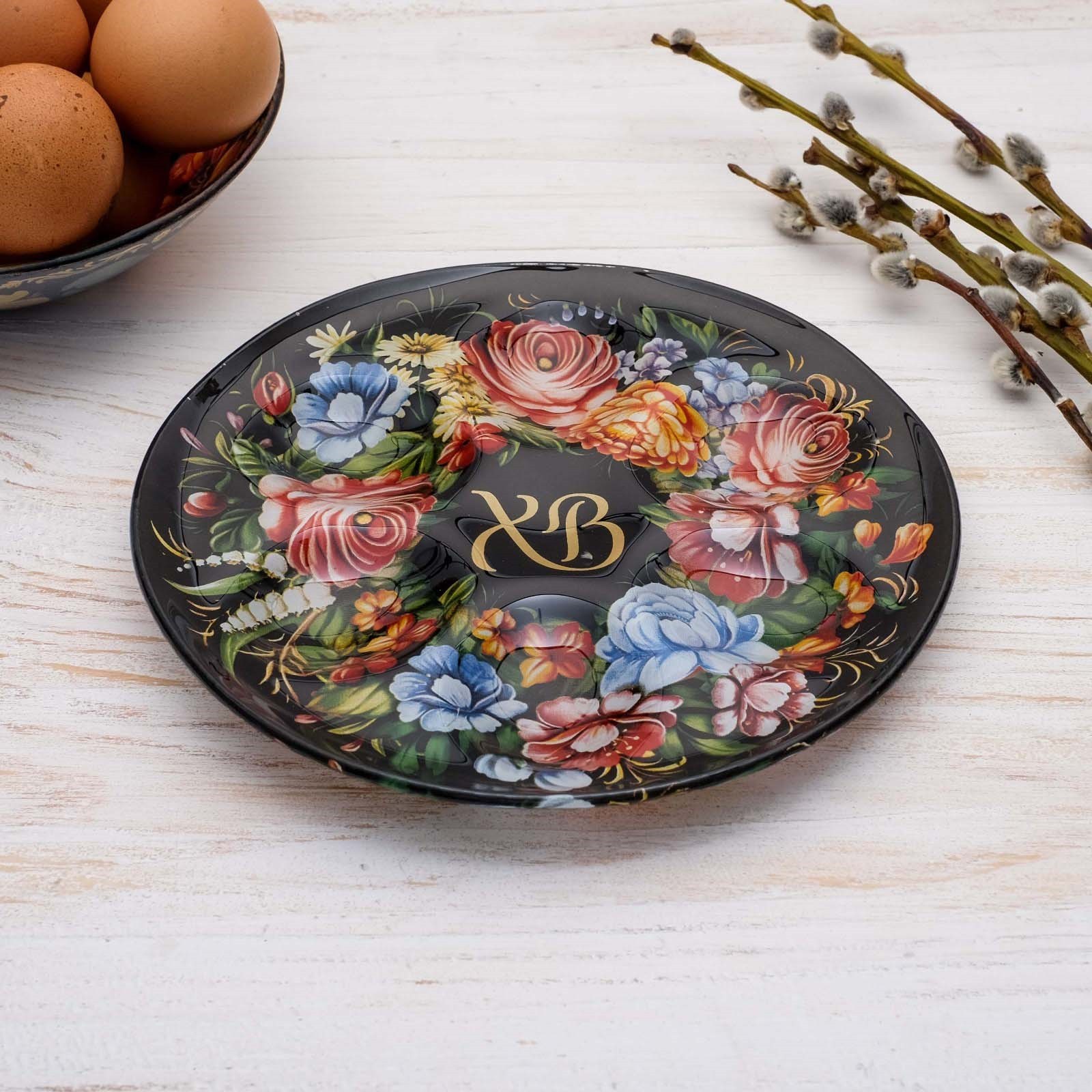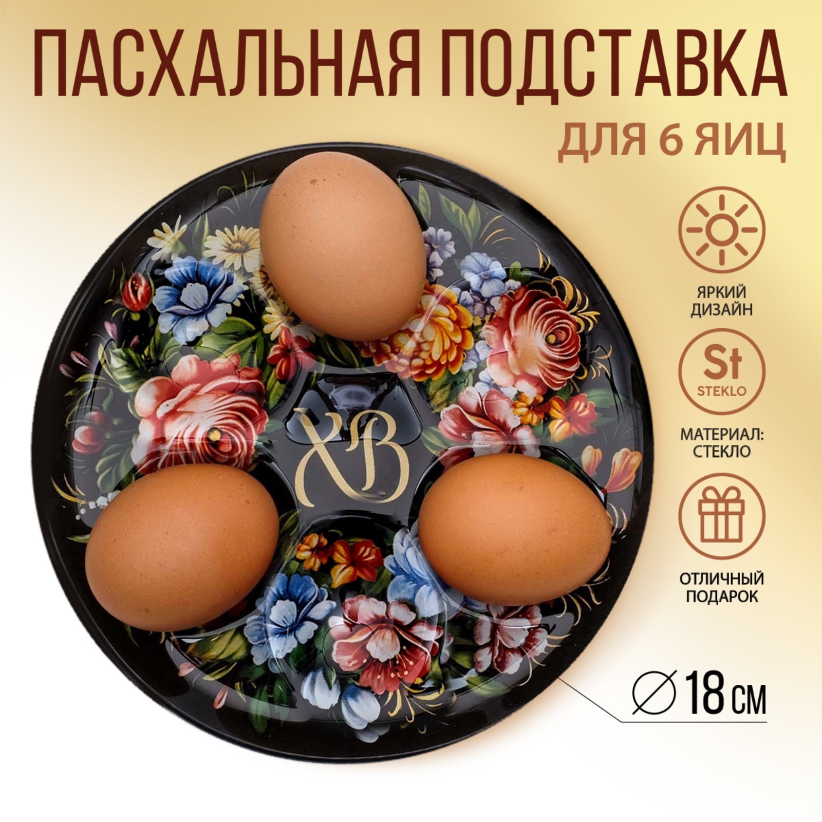 Стеклянная подставка на 6 яиц «хв», 18 х 18 см.
