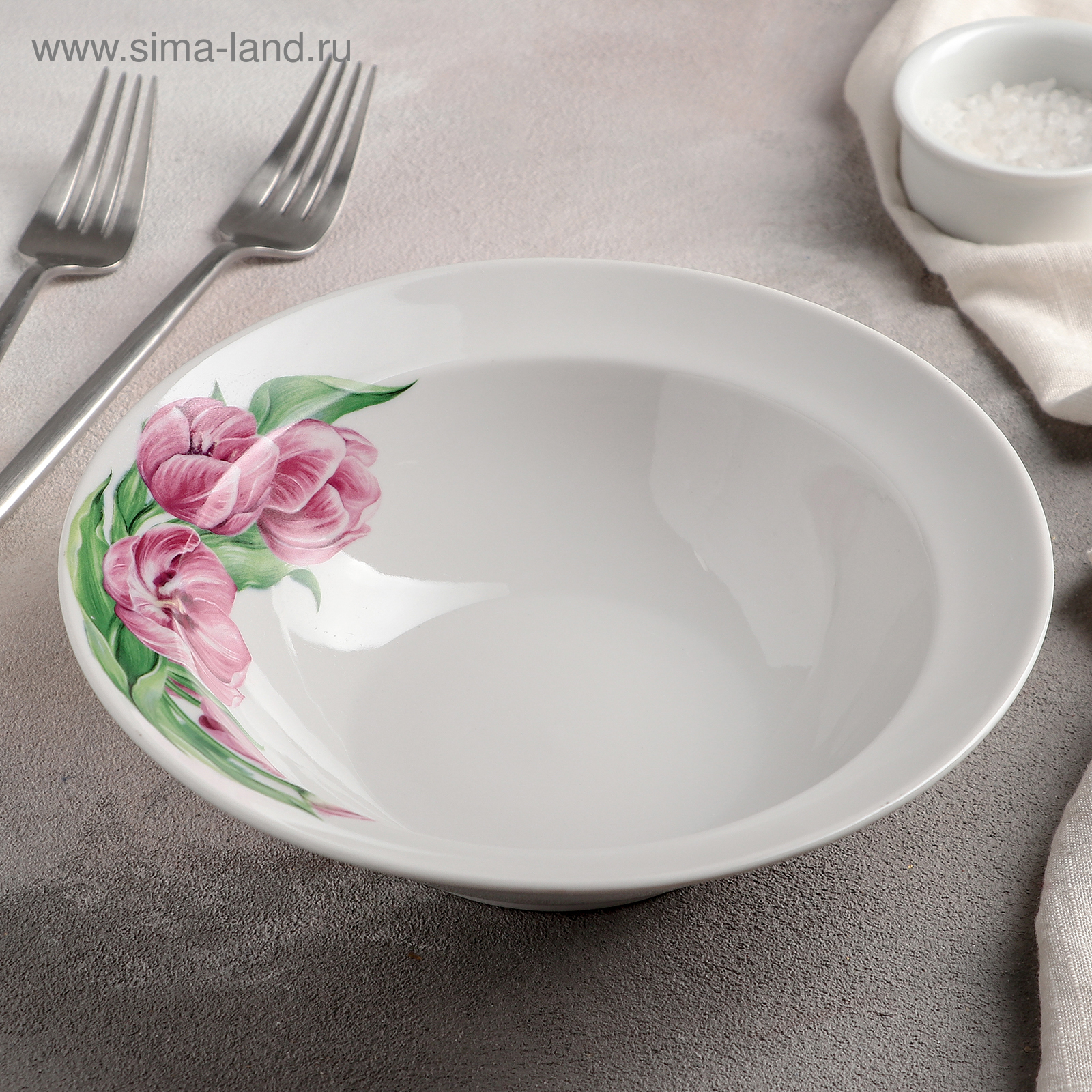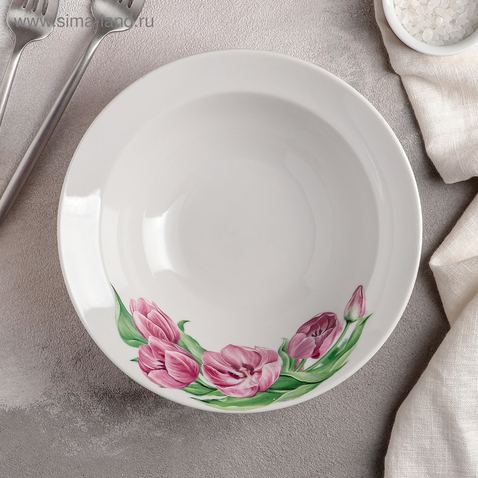 Миска «розовые тюльпаны», 500 мл, D=20 см