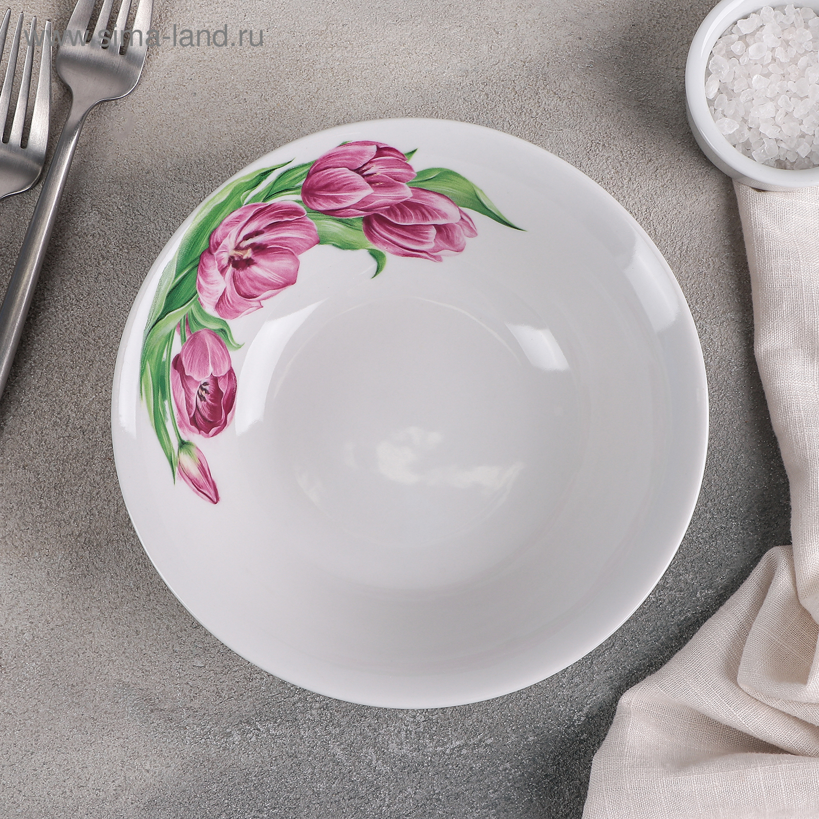 Салатник «розовые тюльпаны», 570 мл, D=17,5 см