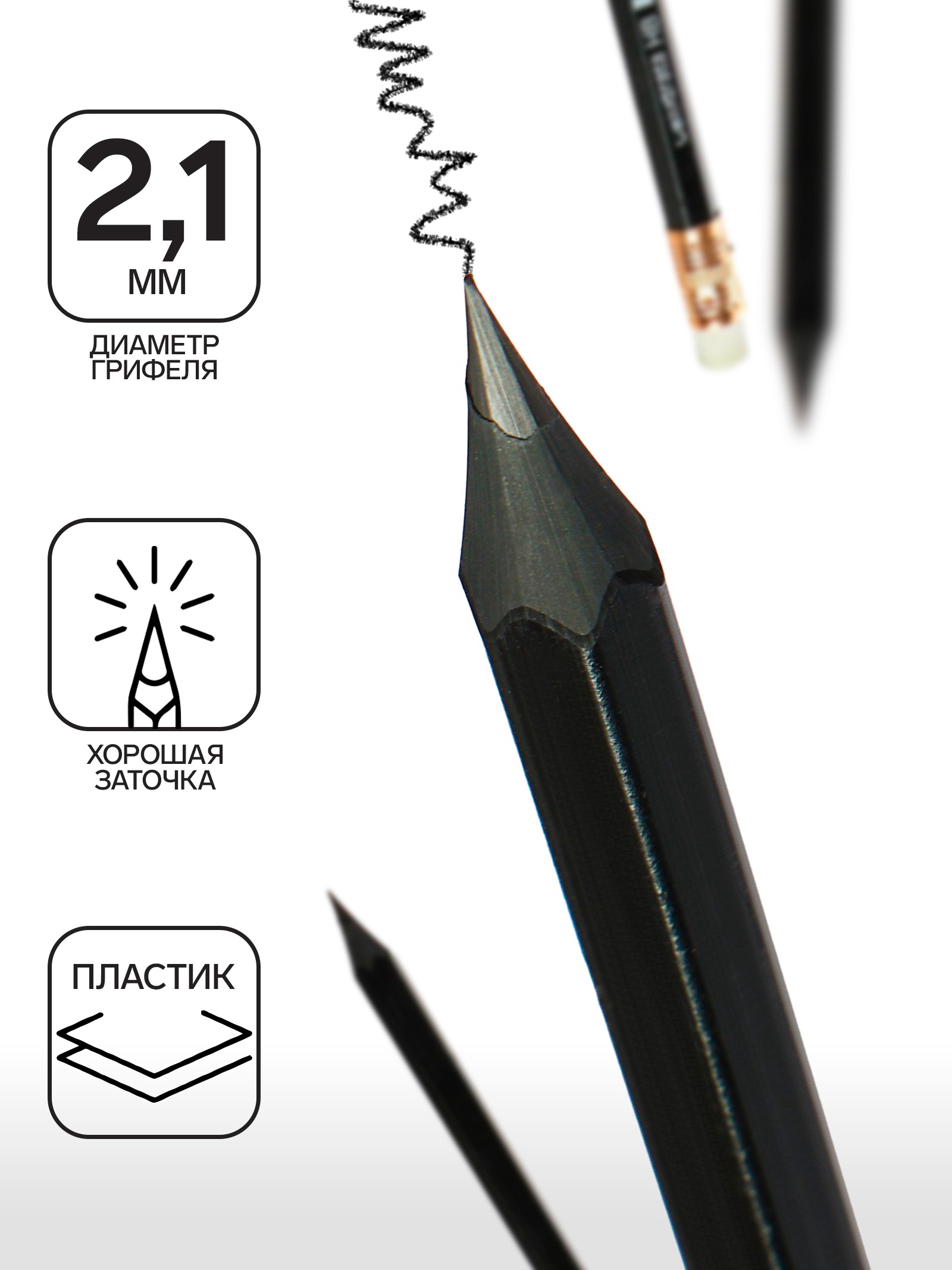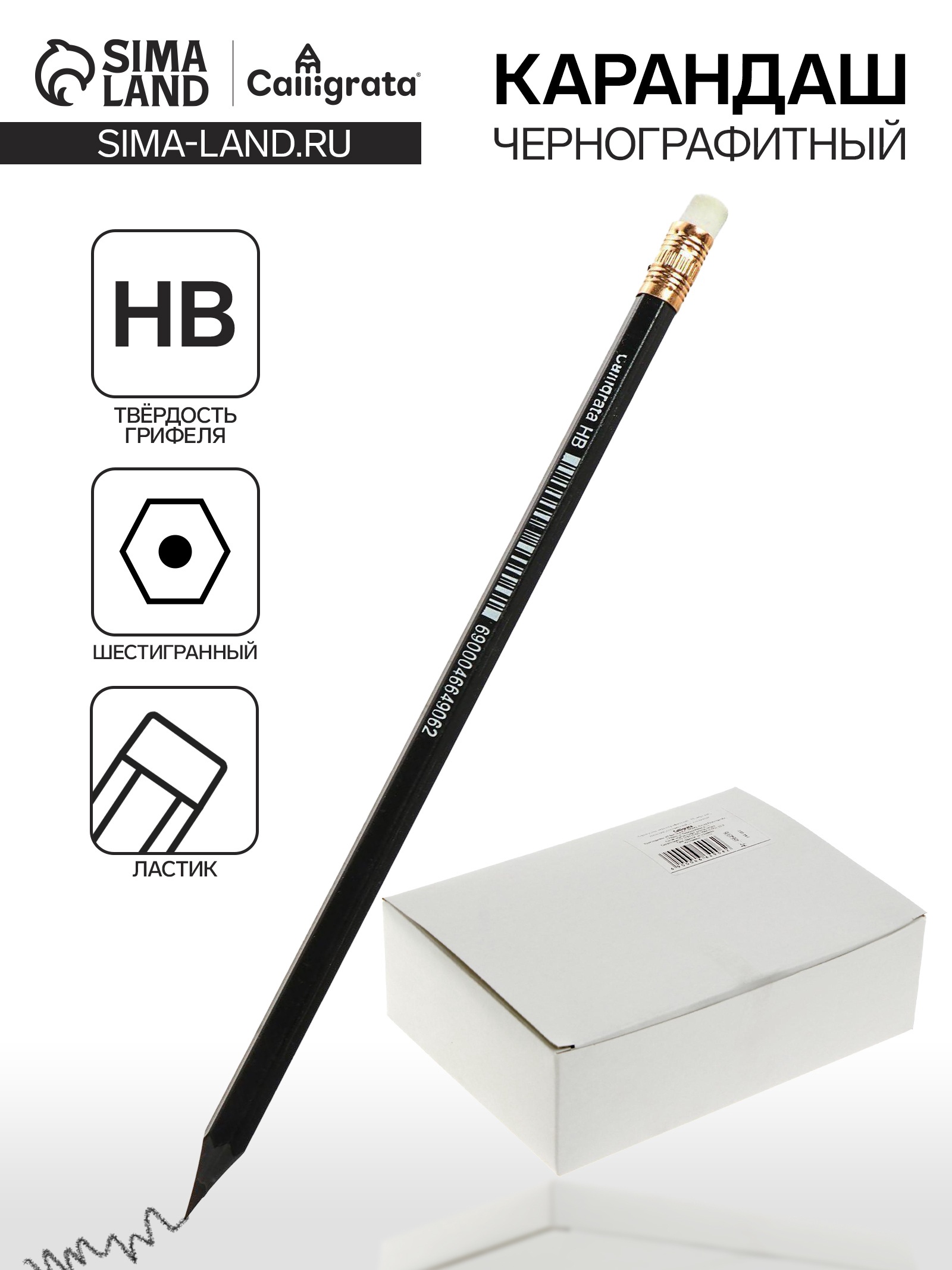 Карандаш чернографитный Hb, Calligrata, с ластиком, пластиковый, микс