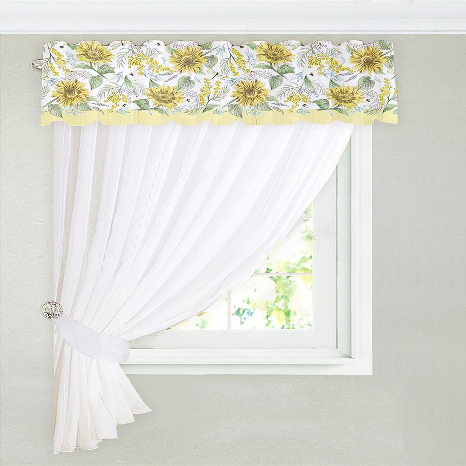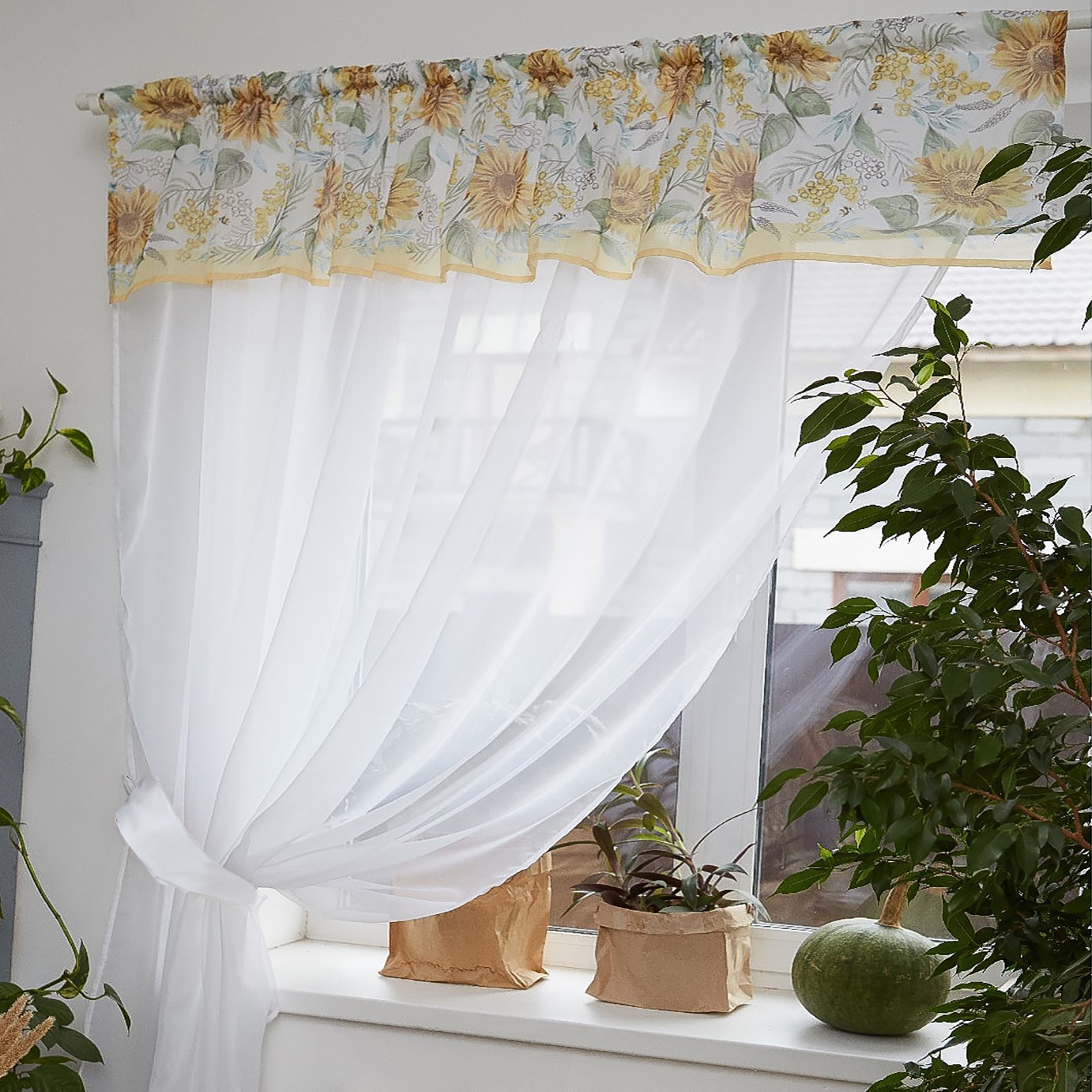 Тюль с подхватом и ламбрекеном «солнечные цветы», 250 200 см, 100% п/э, вуаль