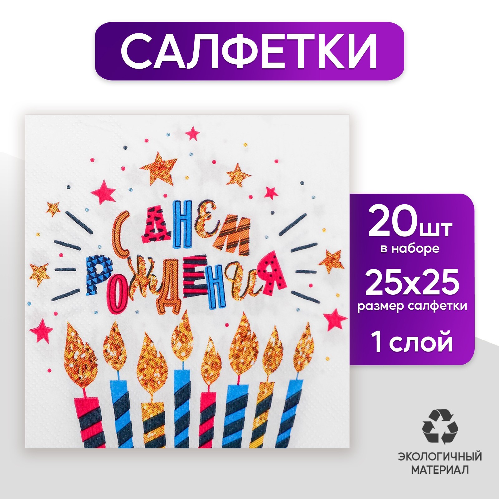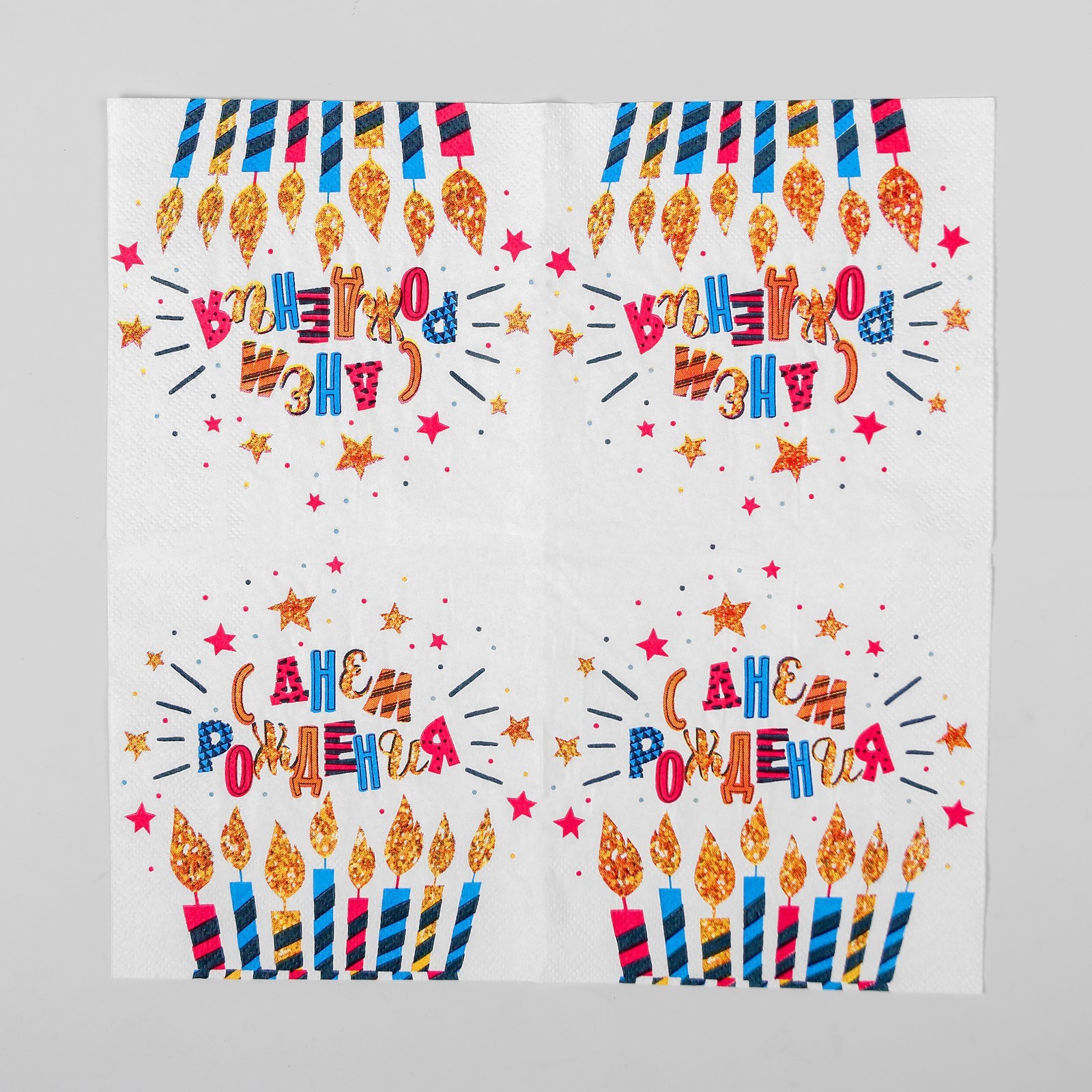 Cалфетки «с днём рождения», свечи, 25х25, набор 20 шт.