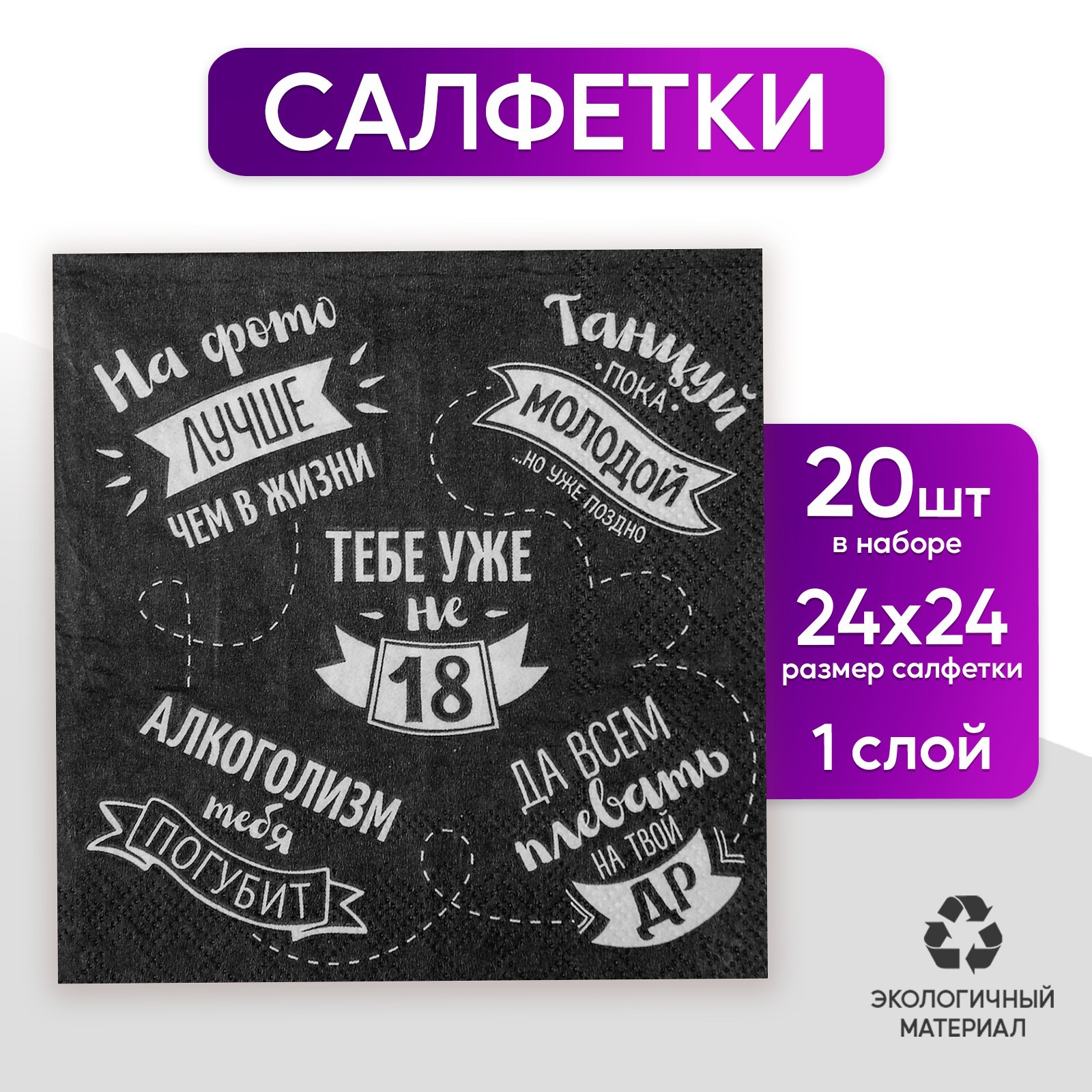 Cалфетки бумажные однослойные 24х24 «тебе уже не 18» (набор 20 шт)
