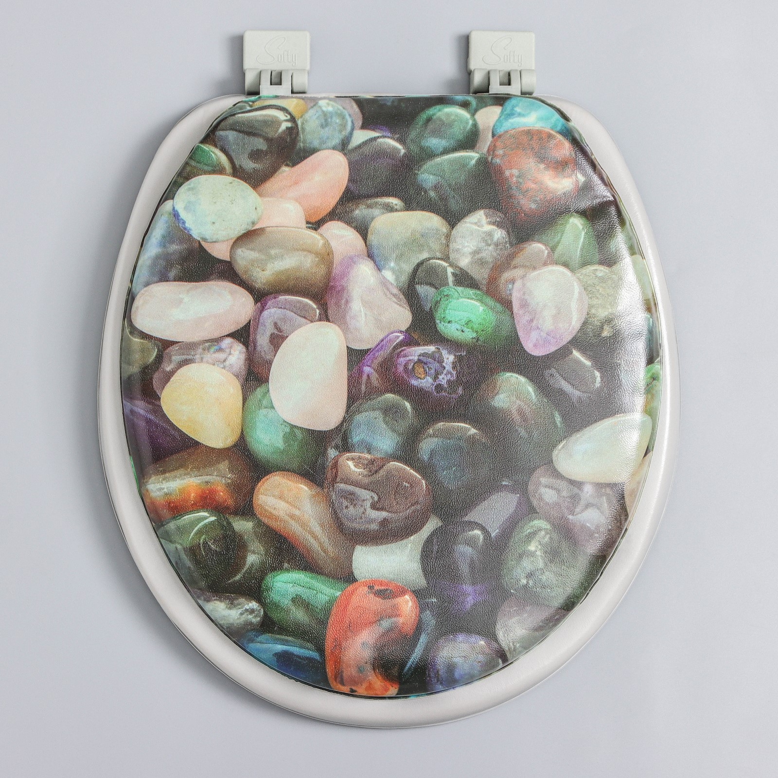 Сиденье для унитаза с крышкой, росспласт,43x37 см, мягкое, цвет серый, рисунок микс
