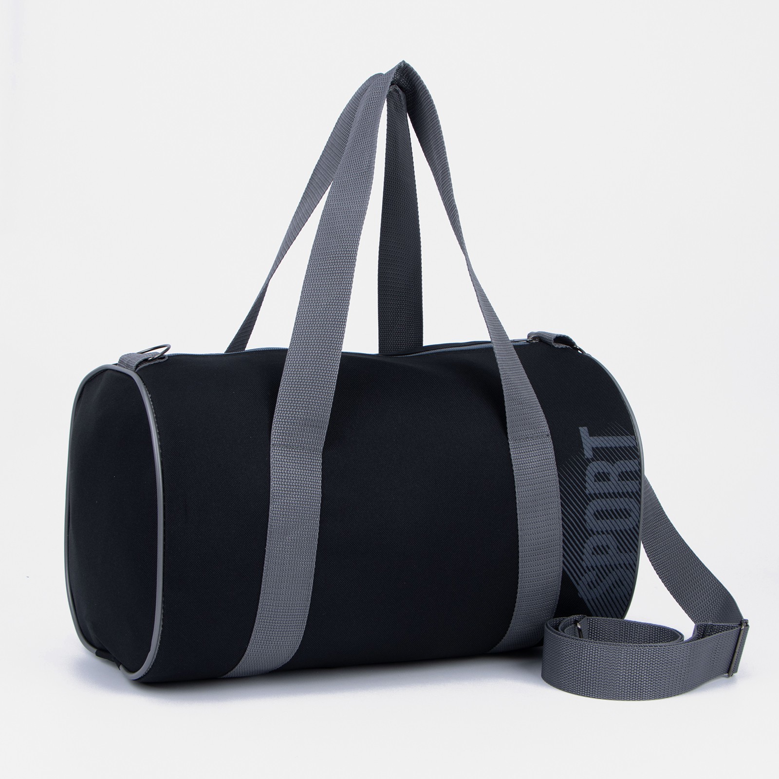 Сумка спортивная на молнии, без подкладки, длинный ремень, средний размер, цвет чёрный/серый