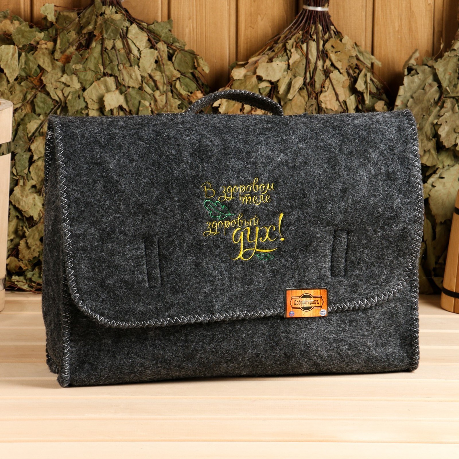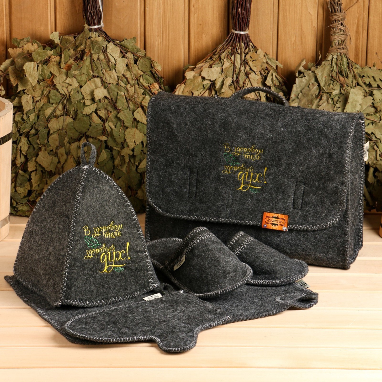 Набор для бани с вышивкой «в здоровом теле здоровый дух!», 5 предметов: портфель, шапка, рукавица, тапки, коврик, «добропаровъ»