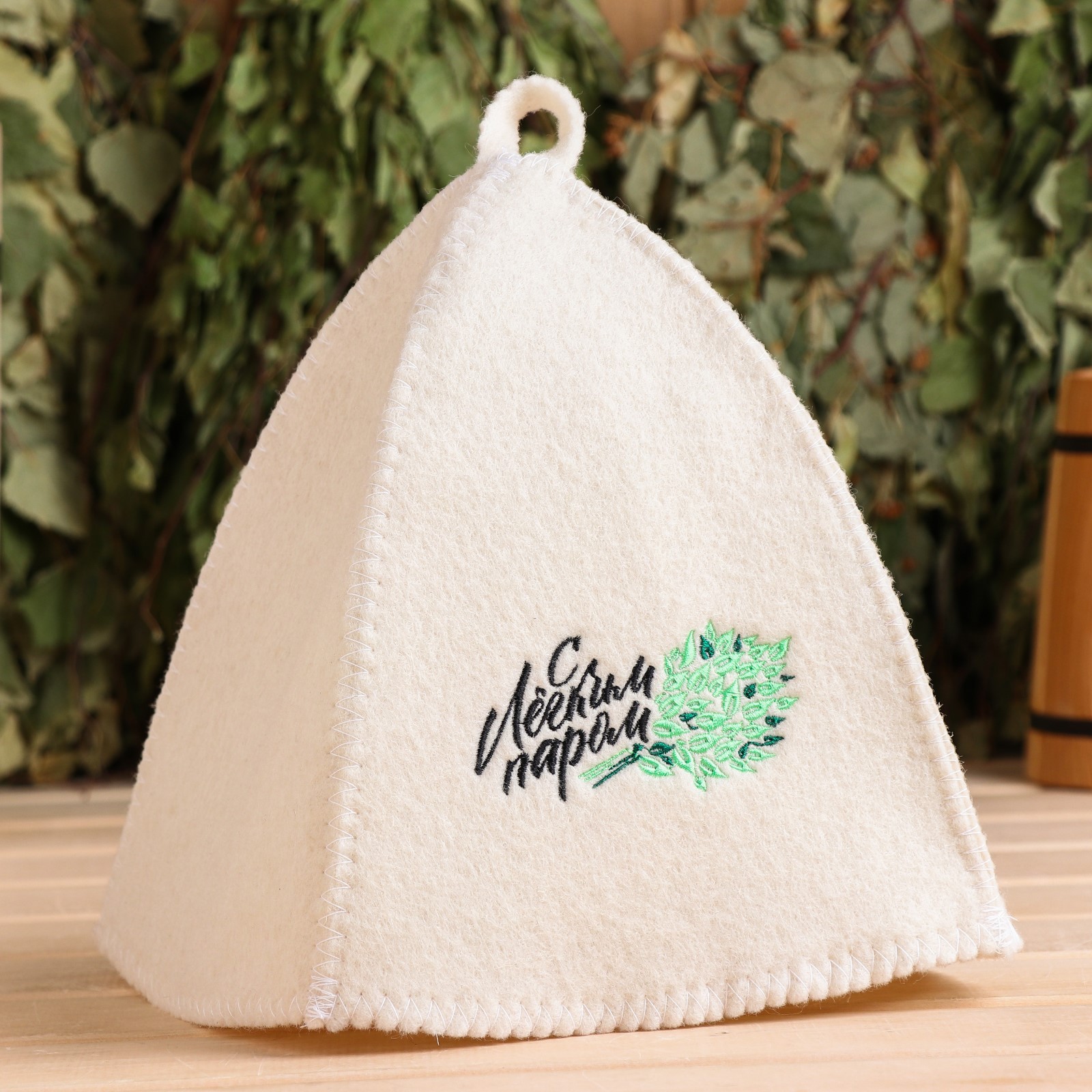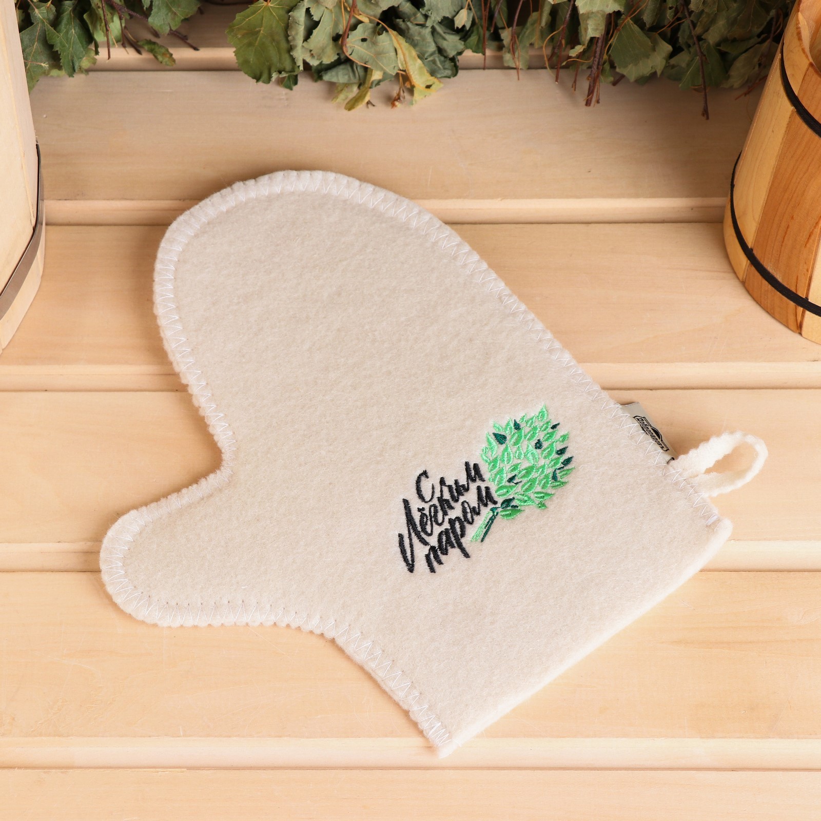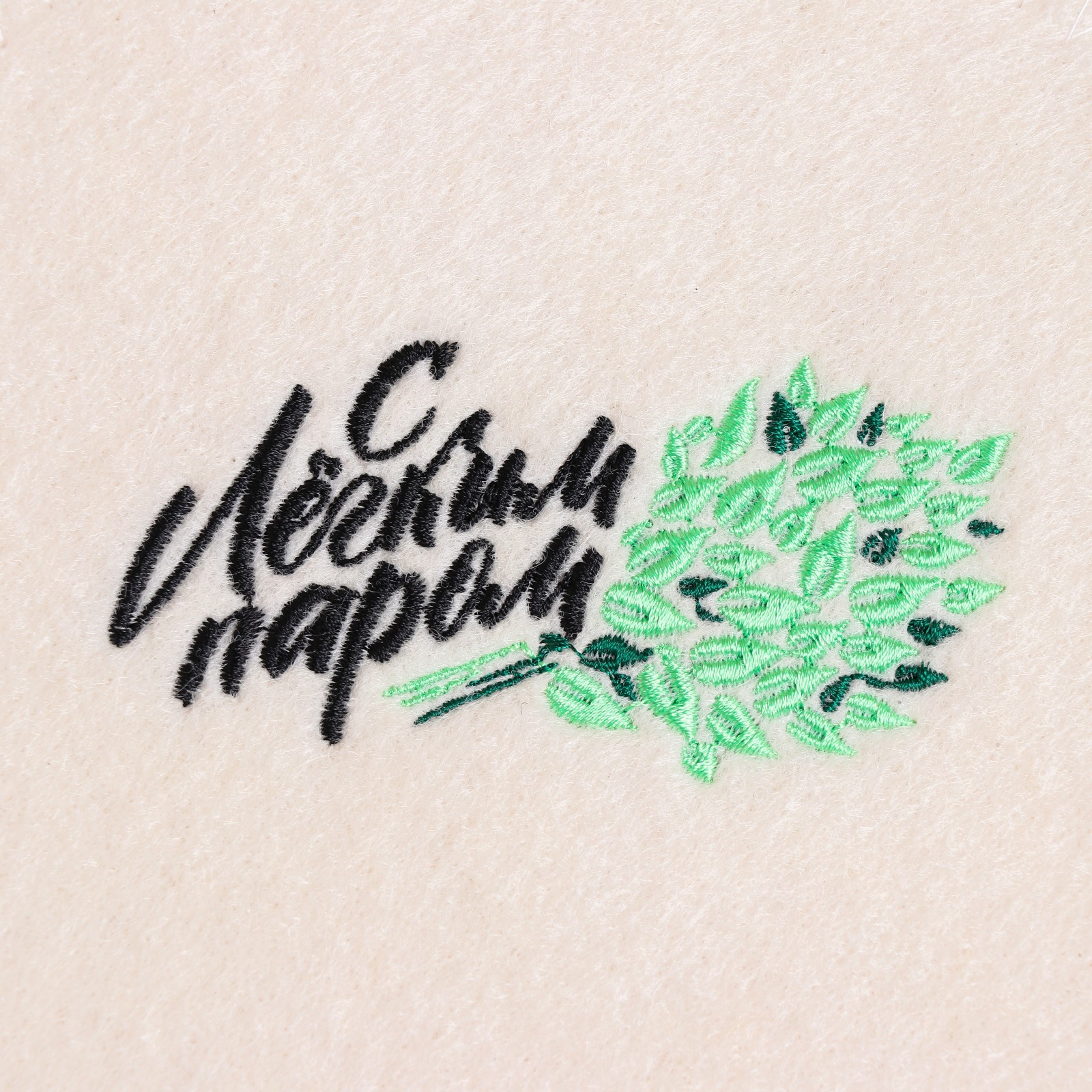 Набор для бани с вышивкой «с лёгким паром! веник», 3 предмета: шапка, коврик, рукавица, шерсть 30%, полиэфир 70%, светлый, «добр