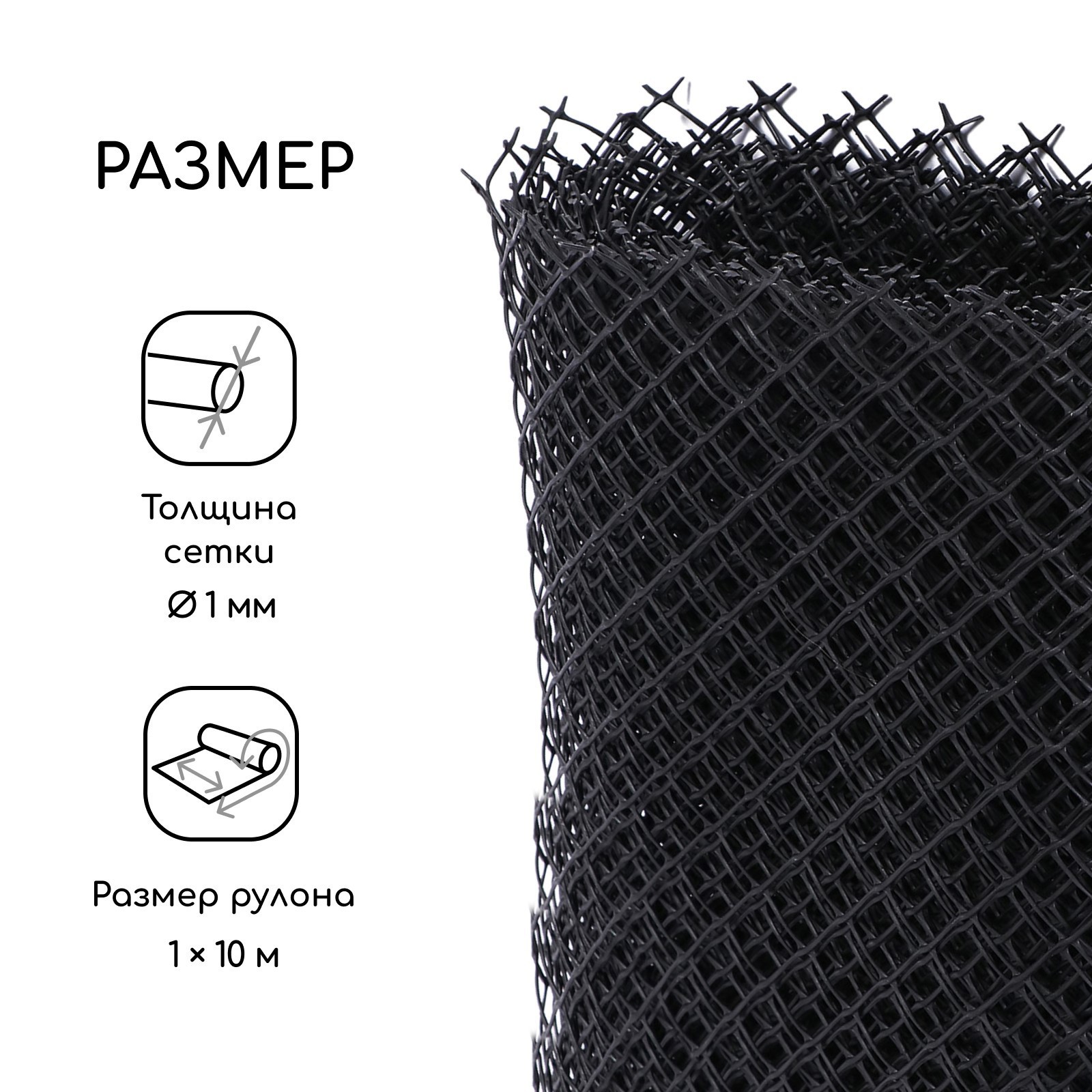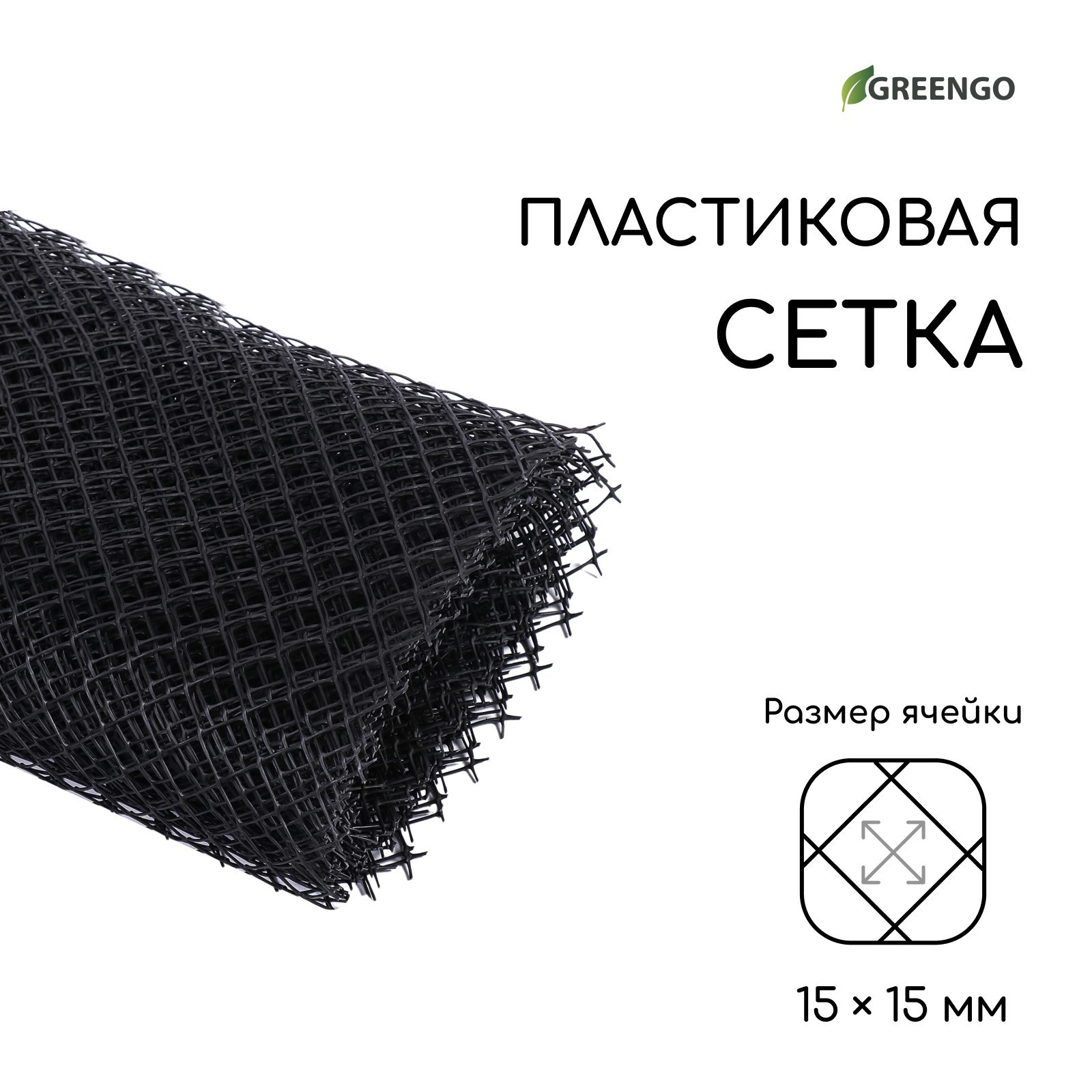 Сетка садовая, 1 10 м ячейка ромб 15 15 мм, пластиковая, чёрная, Greengo, в рулоне
