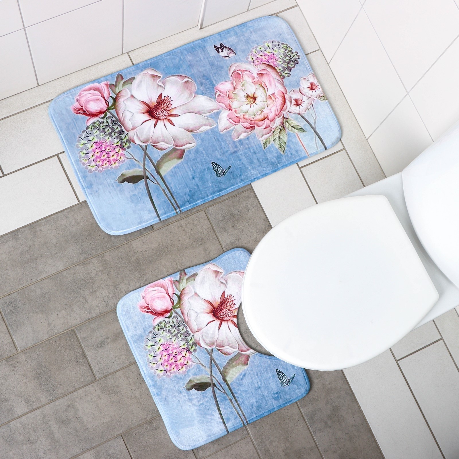 Набор ковриков для ванной и туалета доляна «весна», 2 шт, 40x45 см, 45x75 см