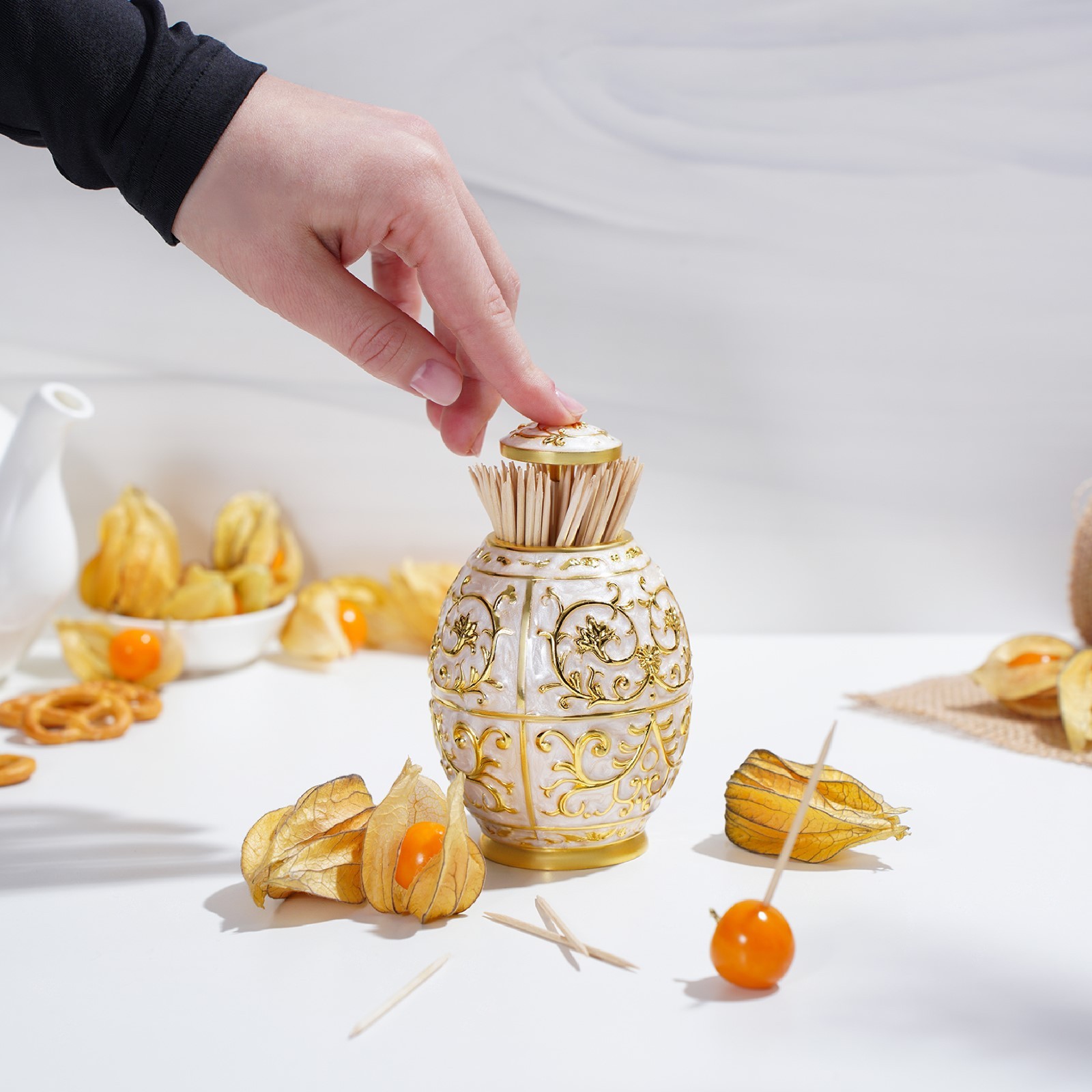 Подставка под зубочистки, 8x12 см, цвет металла золотой. Подставка под зубочистки в виде яйца – приятная интерьерная мелочь. Дополнит облик вашего стола. Станет замечательным подарком по любому поводу. Держатель для зубочисток – аксессуар, который также незаменим в сервировке столиков для кафе и ресторанов, как, например, солонка или перечница. Цвет: Золотистый Цвет: Белый parts count: 0 Тематика: Узоры Материал: Металл Материал: Пластик Можно мыть в посудомоечной машине: Нет Форма: Овал  развернуть описание ▼