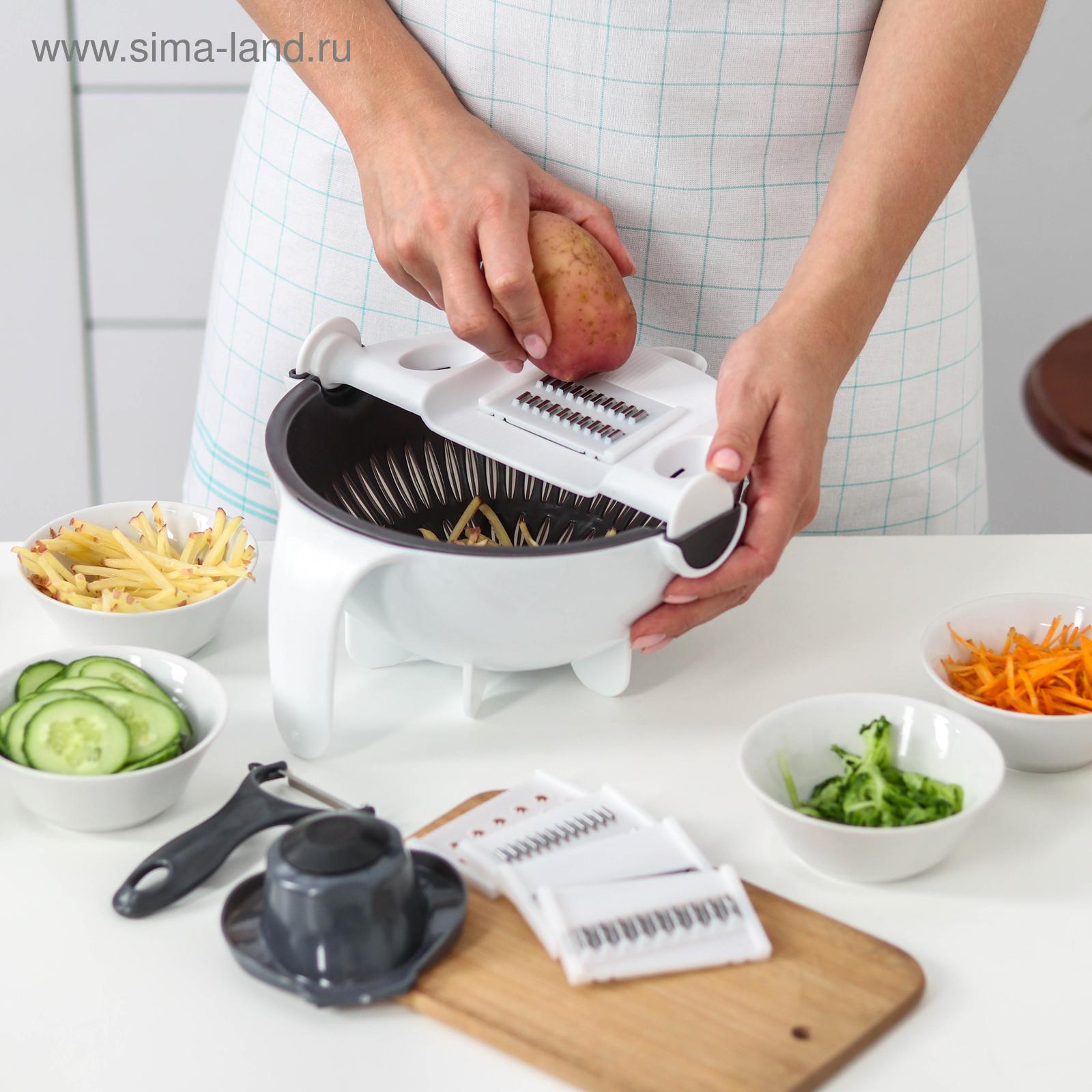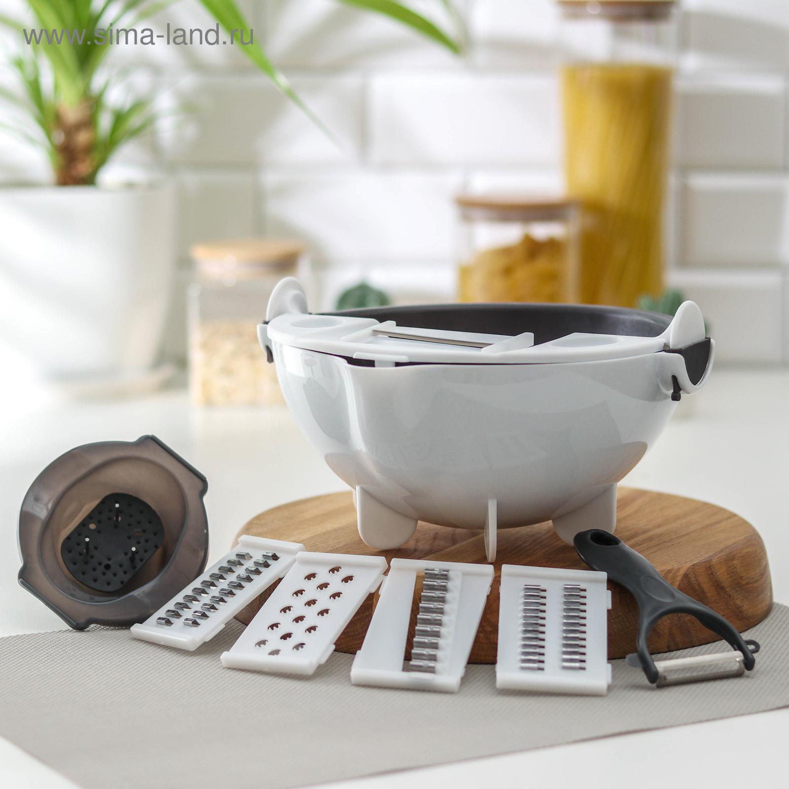 Многофункциональная овощерезка «маджестик», со сливной корзиной, 22,3x13,5x22,5 см, цвет бело-серый