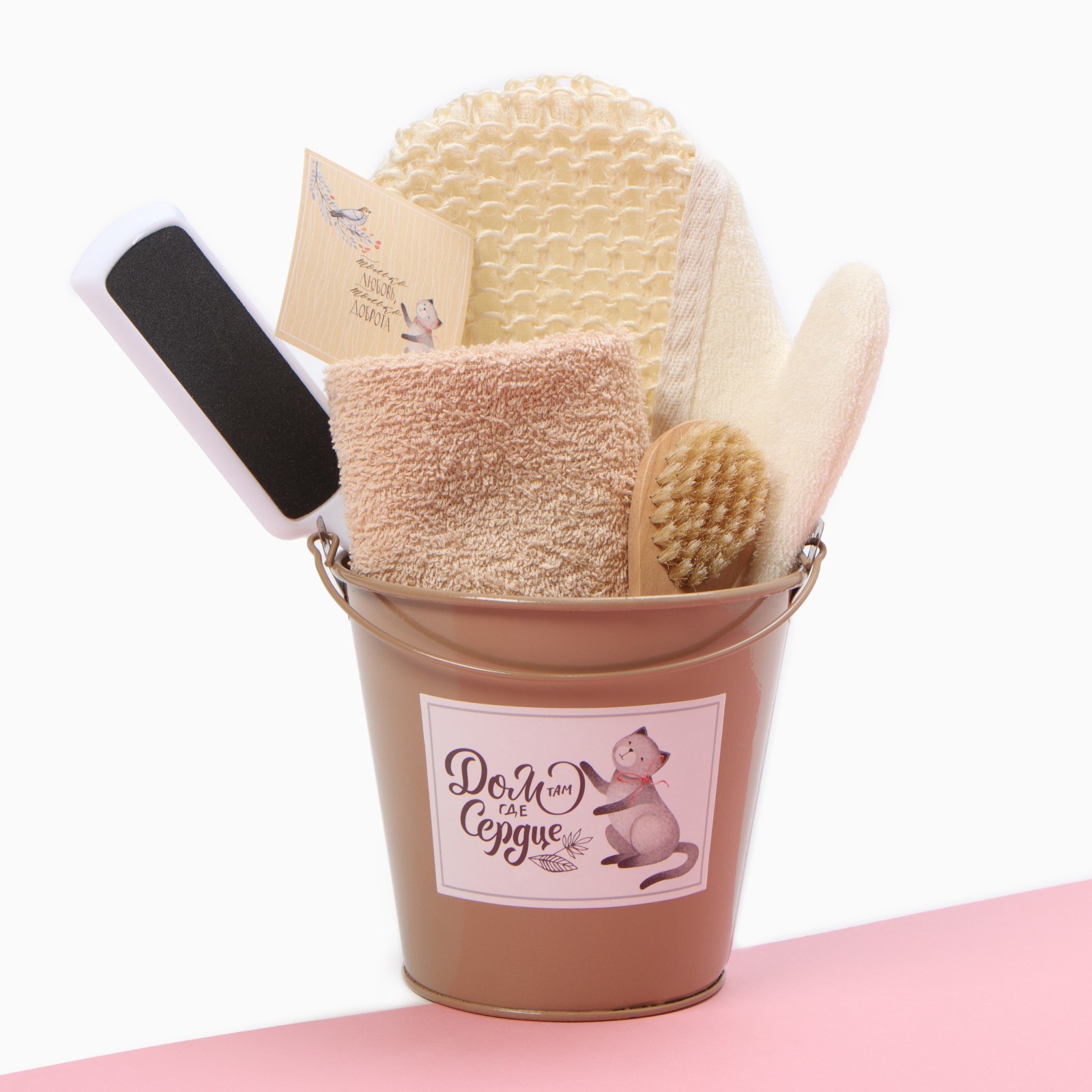 Набор подарочный «этель» home sweet home, полотенце, щётка, мочалка.