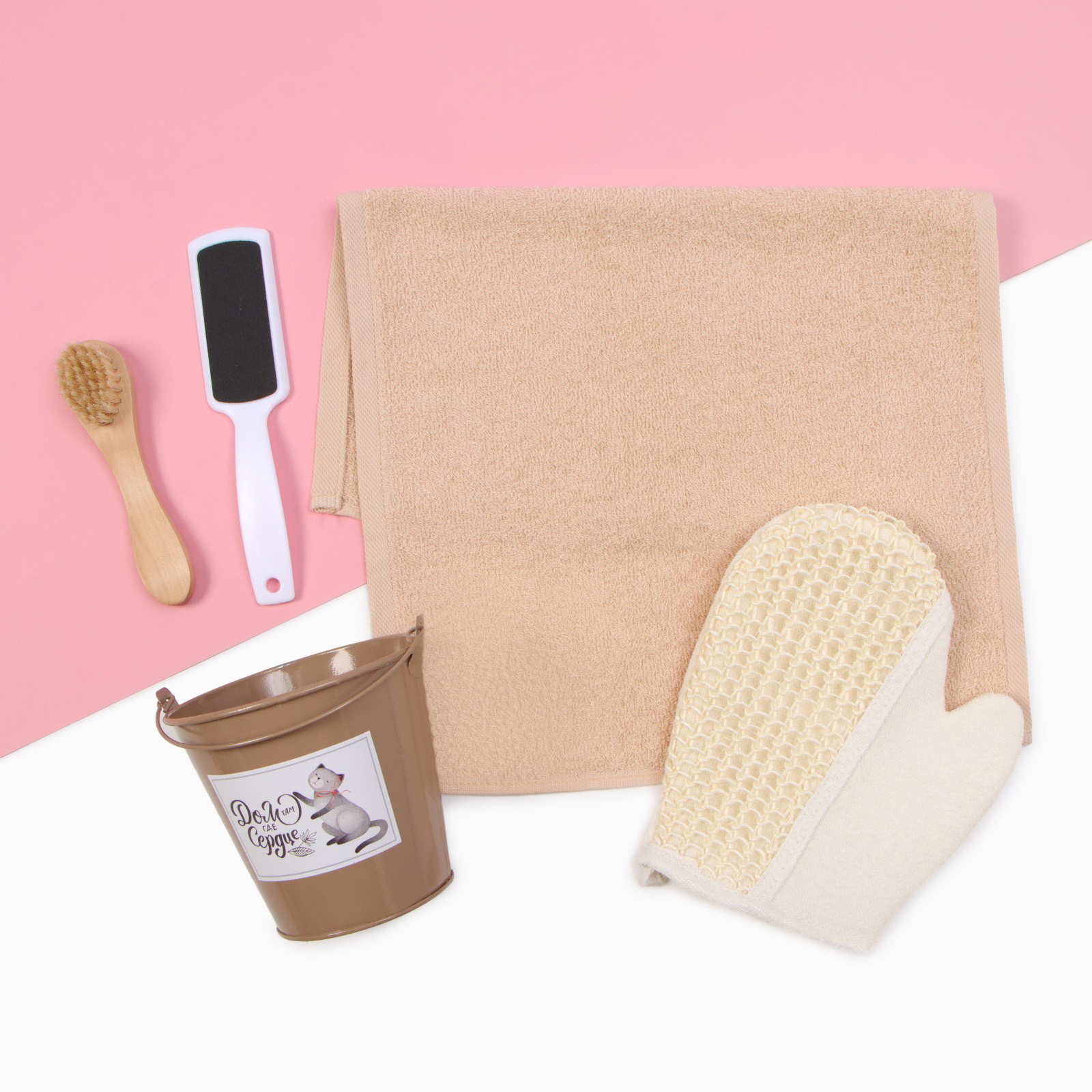 Набор:Да|Цвет:Коричневый|Для кого:Для женщины|Ткань:Махра|Плотность, г/м :350|Размер, см:35 х 50|В наборе, шт.:5|Тематика:Женская|Вид упаковки:Пакет|Вид упаковки:Ведерко|Тематика праздника:8 Марта|Адресат:Без адресата|Возраст:Взрослый|Материал:Хлопок|Декоративные элементы:Без элементов|Рекомендации по уходу:Глажка при 150 °С|Рекомендации по уходу:Стирка при 40 °С|Рекомендации по уходу:Не отбеливать|Рекомендации по уходу:Барабанная сушка при низкой температуре|Назначение полотенец:Для рук|Состав ткани:Хлопок|Составляющие набора:Тёрка для ног|Составляющие набора:Открытка|Составляющие набора:Варежка-мочалка|Составляющие набора:Полотенце|Составляющие набора:Щётка|Возраст:Для взрослых|В подарочной упаковке:Да|Особенности:Без особенностей|Страна:Россия
