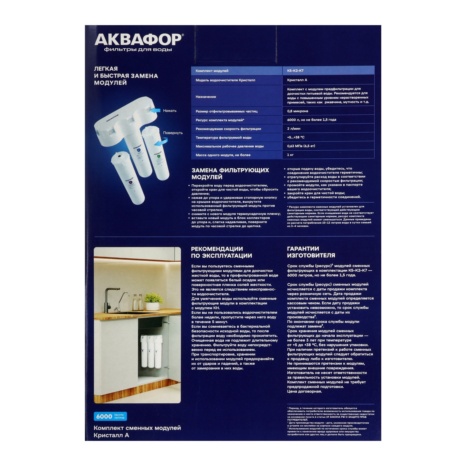 Комплект сменных картриджей для "аквафор" кристалл, к5-к2-к7, фильтрующий