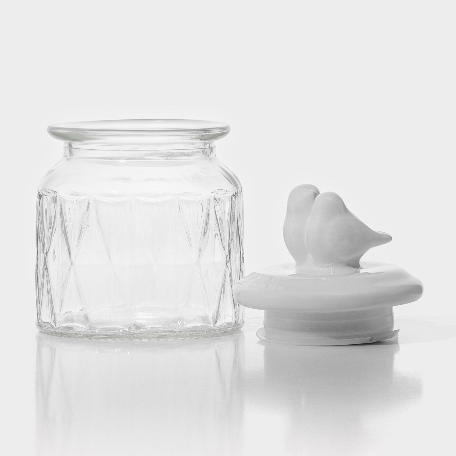 Банка для сыпучих доляна «голубки», 500 мл, 11 17 см, с керамической крышкой, стекло, прозрачная