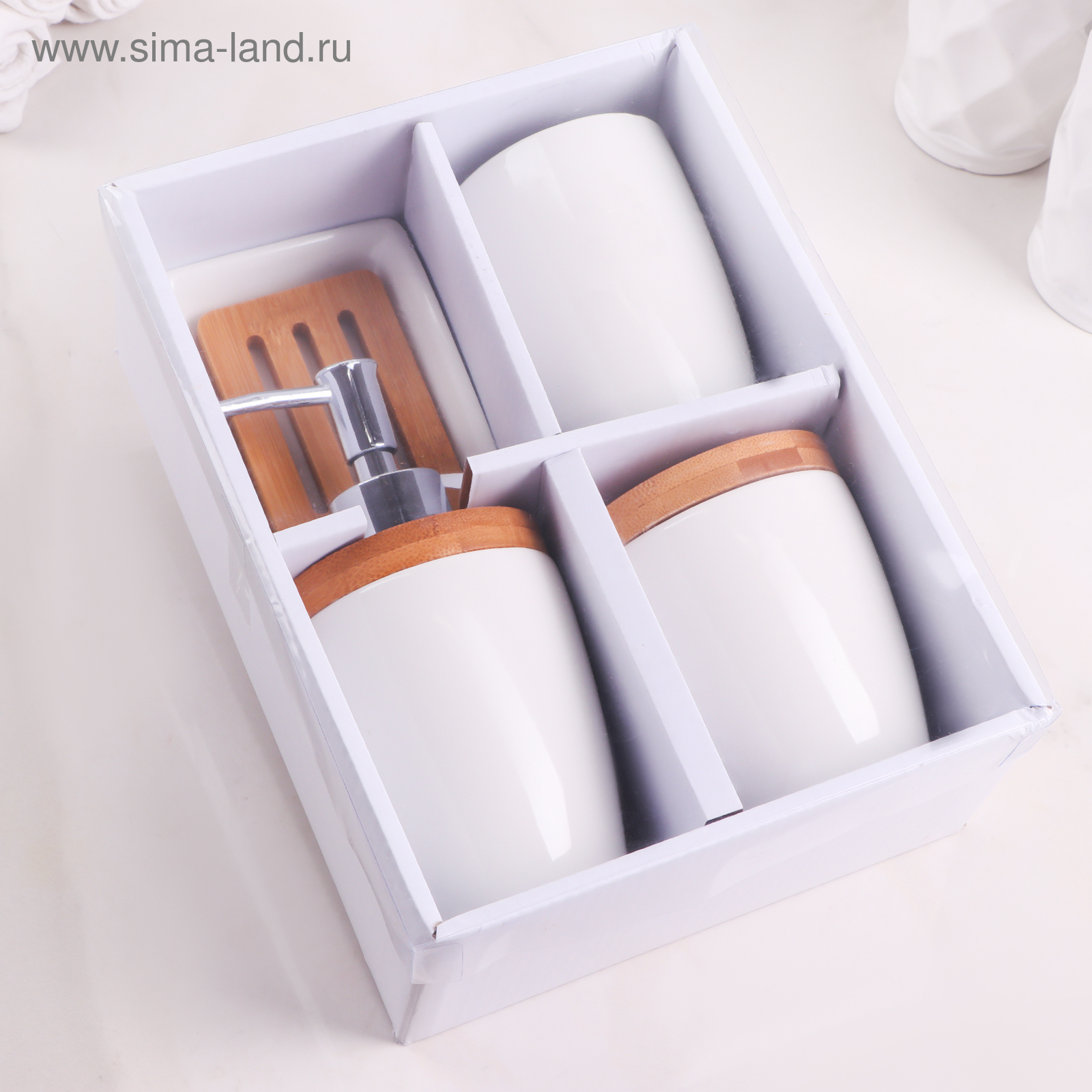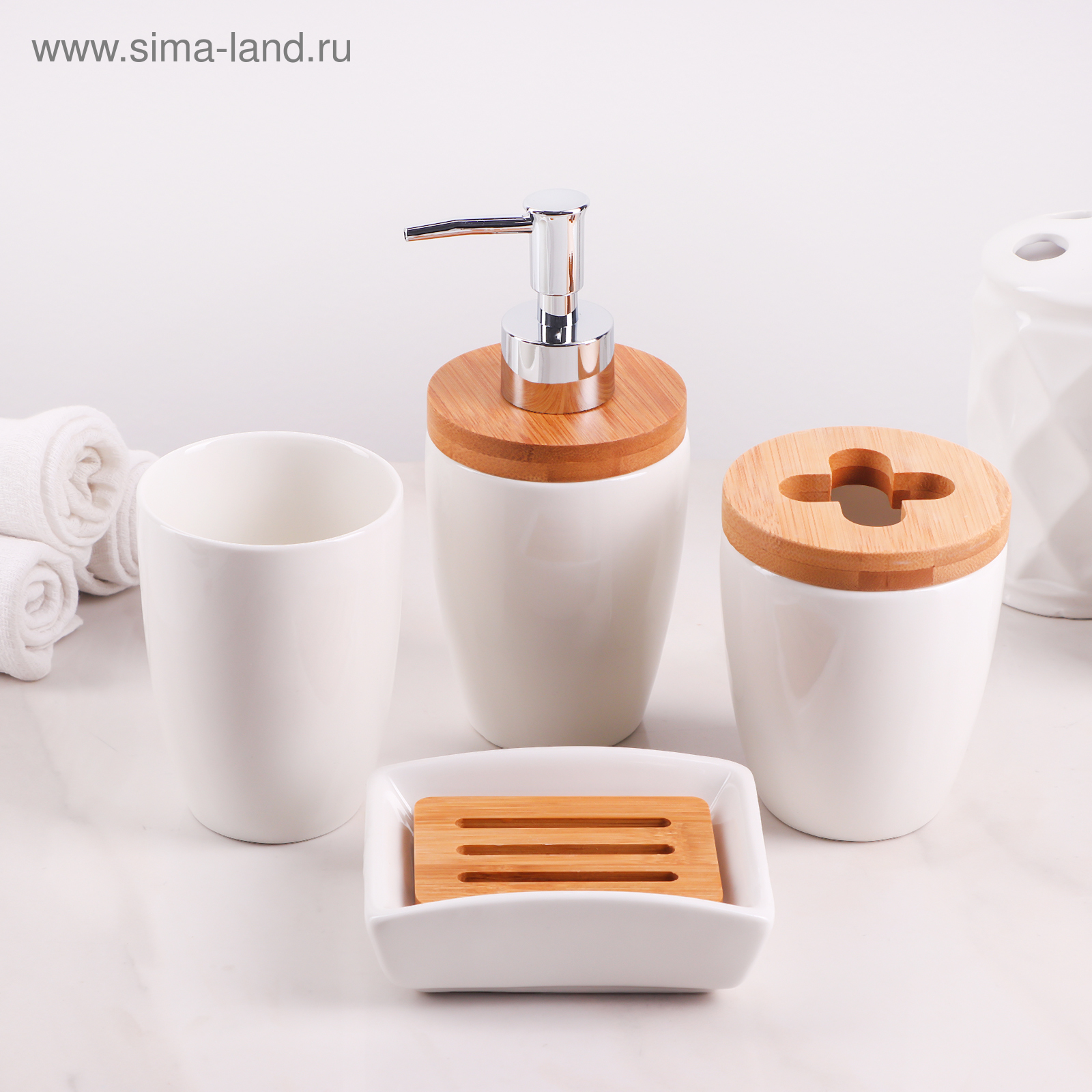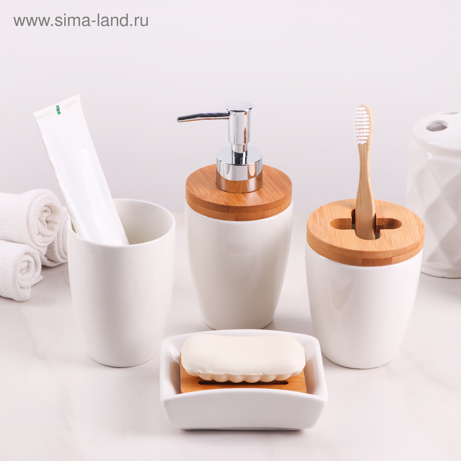 Набор аксессуаров для ванной комнаты «бамбук», 4 предмета (мыльница, дозатор,два стакана)