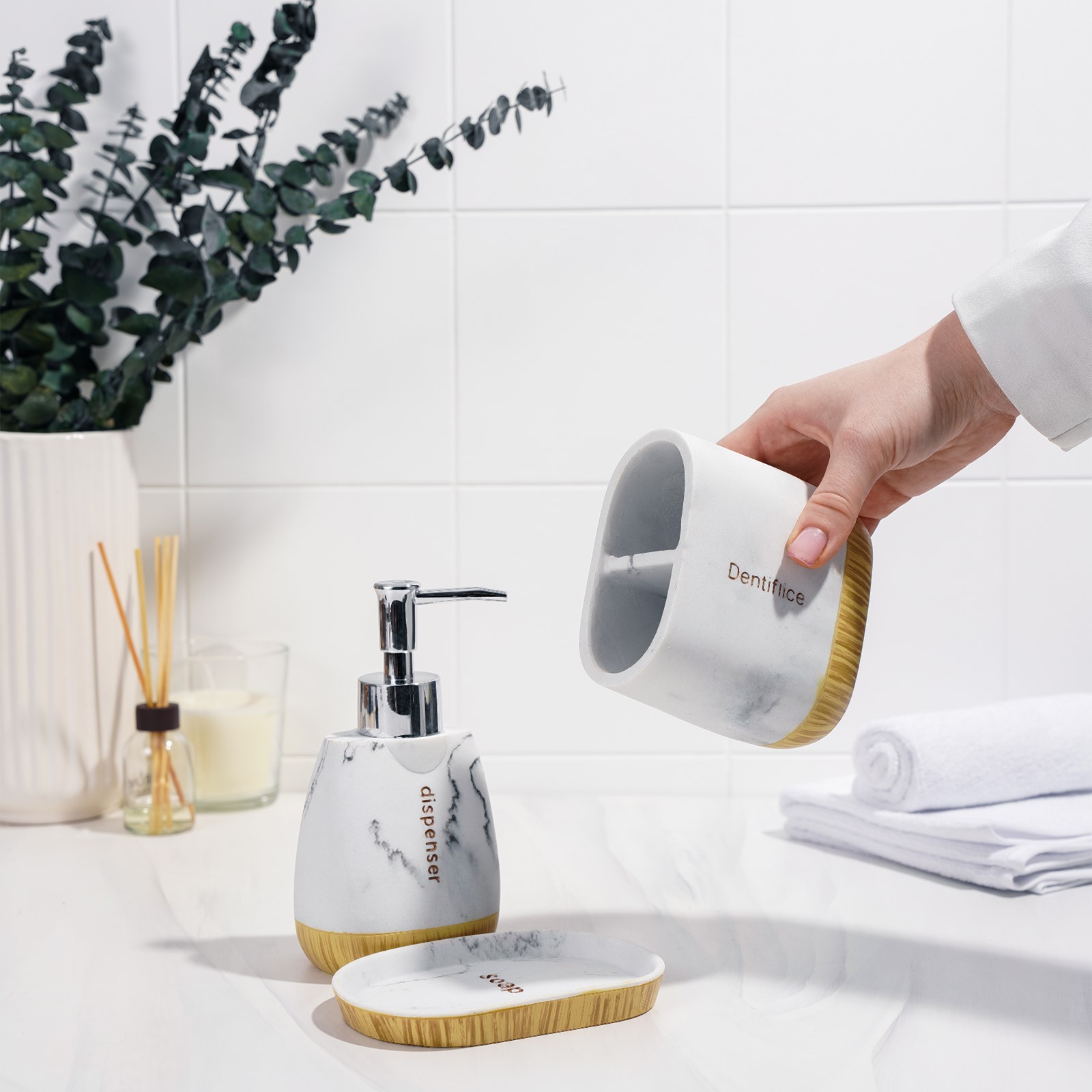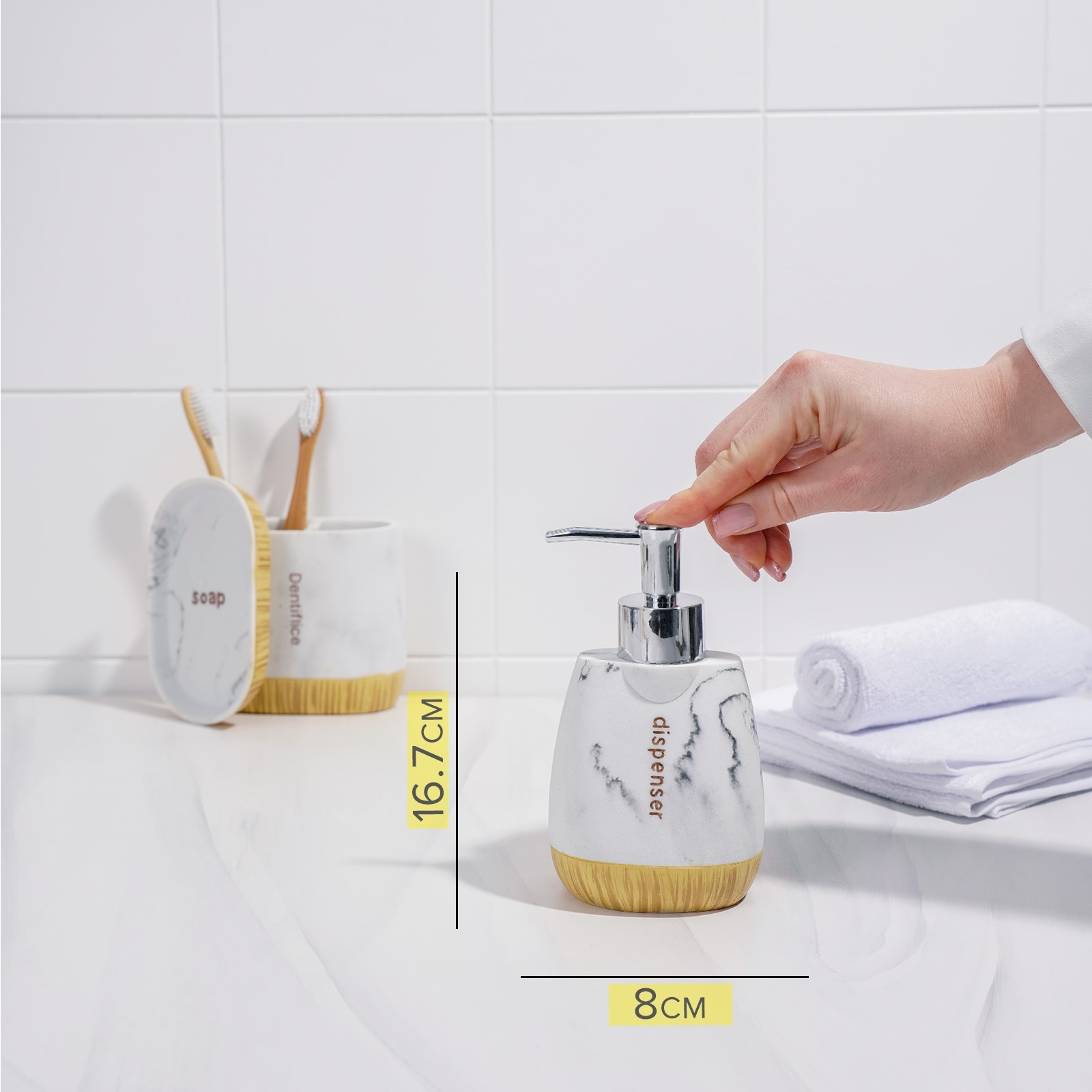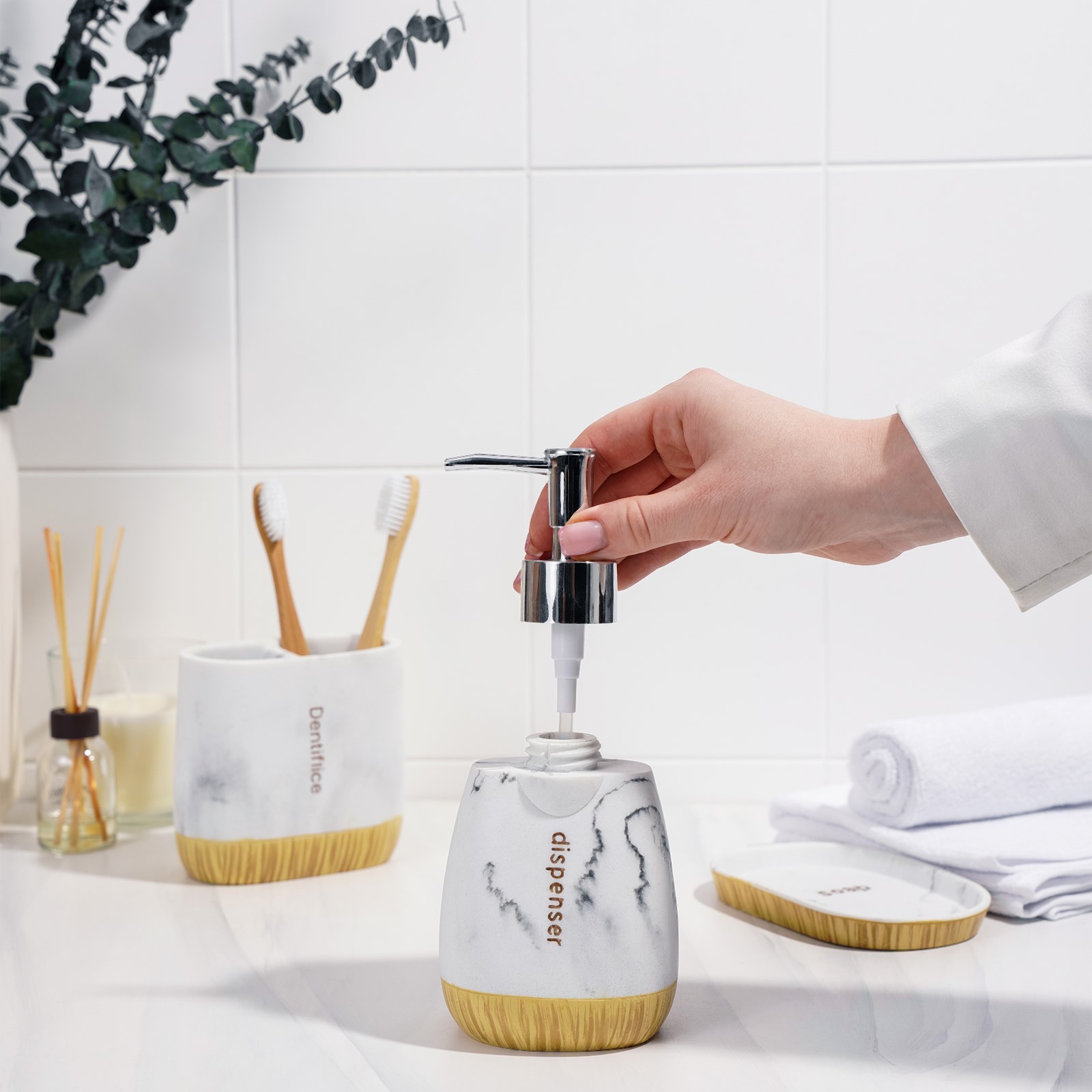 Набор аксессуаров для ванной комнаты For, 3 предмета (дозатор 150 мл, мыльница, стакан)