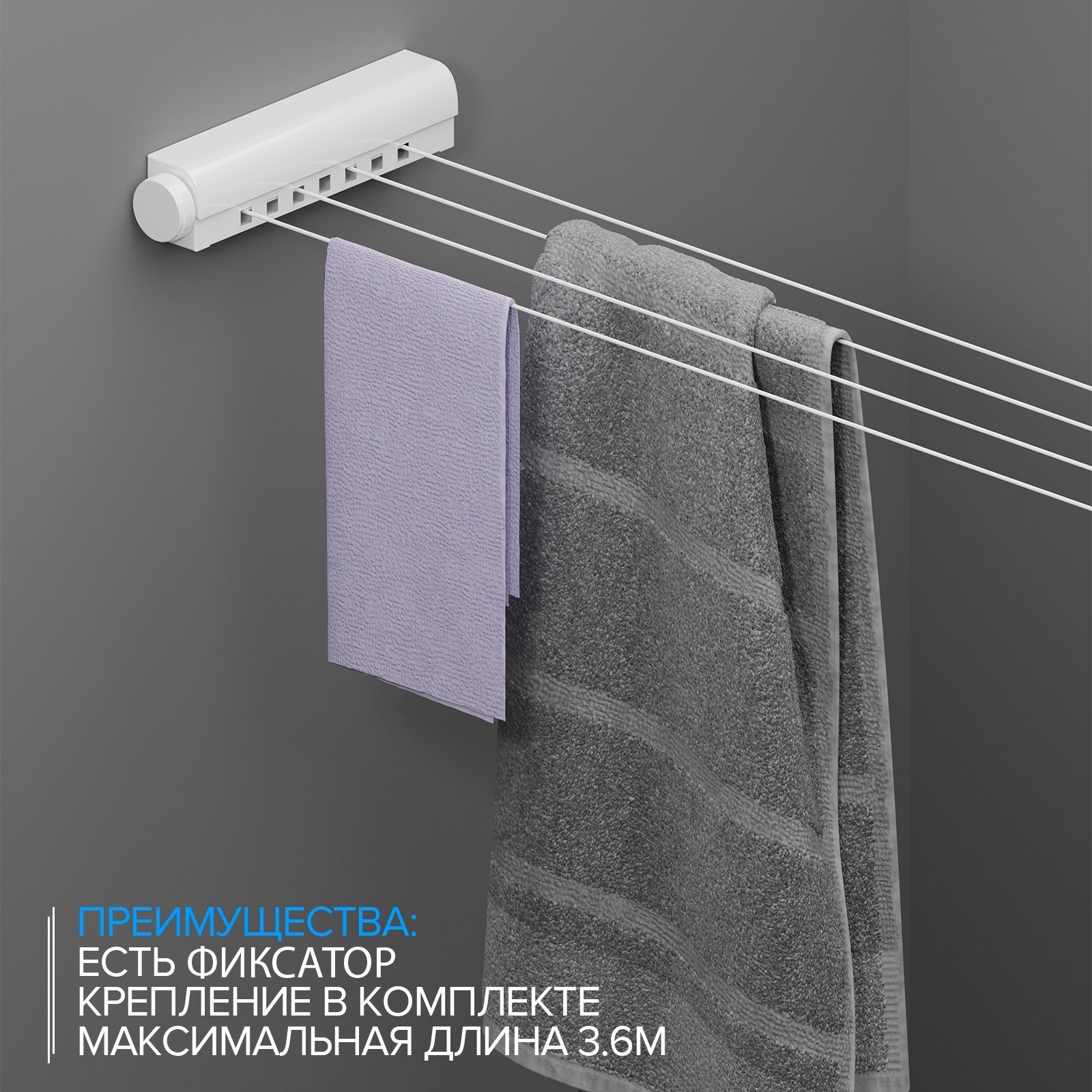 Сушилка для белья роторная вытяжная доляна, 4 линии, цвет белый
