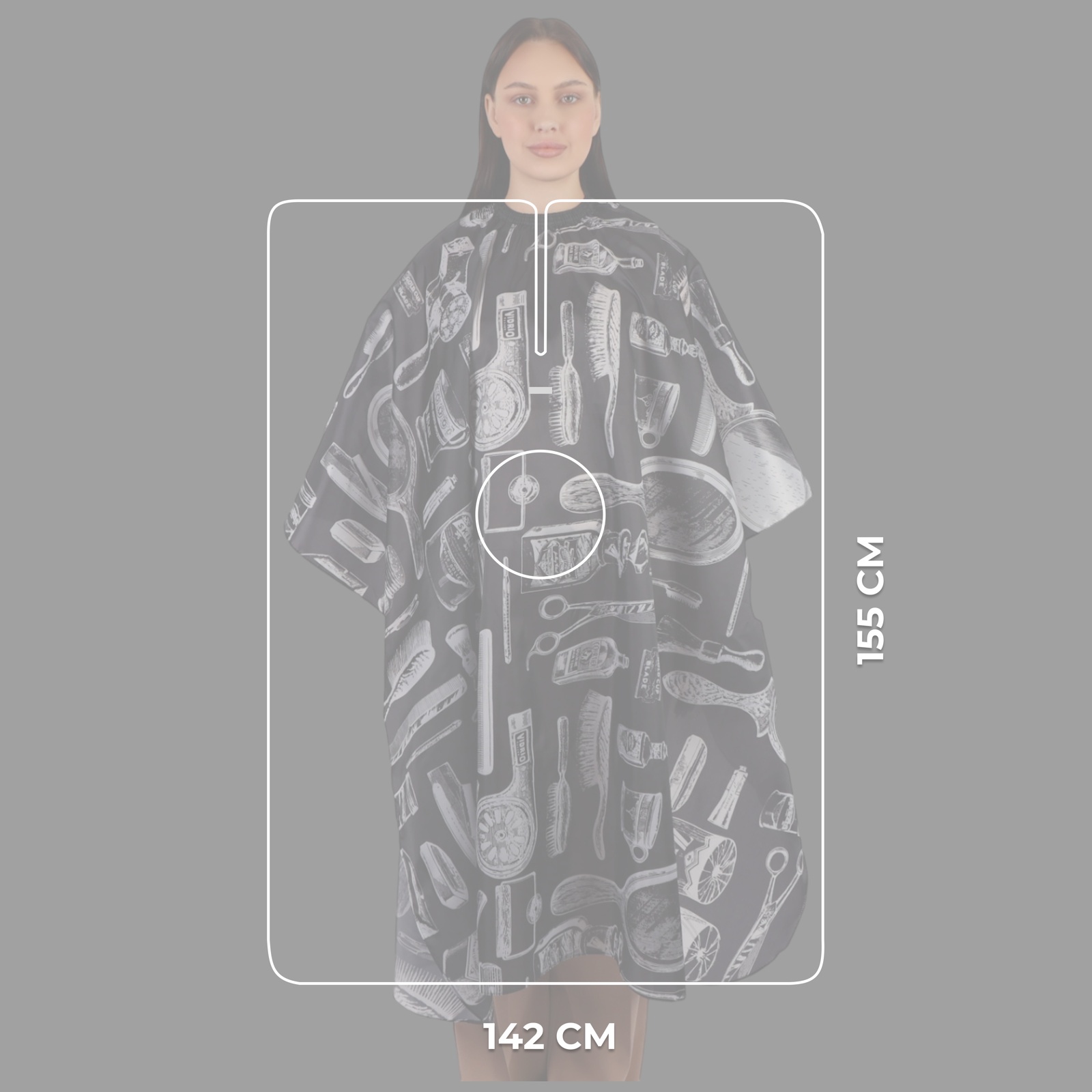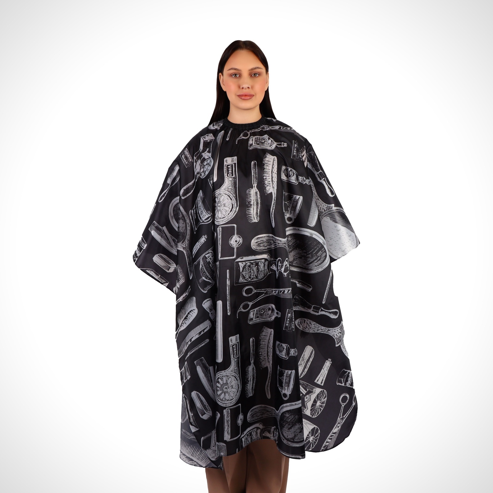 Пеньюар парикмахерский, чёрный, белый. Пеньюар защитит одежду клиента от попадания волос, воды, краски и других составов. Он мягко обхватит шею без утяжеления. Универсальный размер подойдёт людям всех пропорций. Не использовать высокие температуры для разглаживания пеньюара. Рекомендуется использовать метод отпаривания. Рост модели 185 см. Набор:Нет|Цвет:Чёрный|Для кого:Унисекс|Тип одежды:Фартук|Тип одежды:Накидка|Назначение:Рабочая одежда|Назначение:Сфера обслуживания|Ткань:Полиэстер|Особенность спецодежды:Грязезащитная|Особенность спецодежды:Влагозащитная|Рост, см:150 - 180|Сезон:Всесезонный|Вид упаковки:Пакет|Материал:Полиэстер|Страна:Китай  развернуть описание ▼