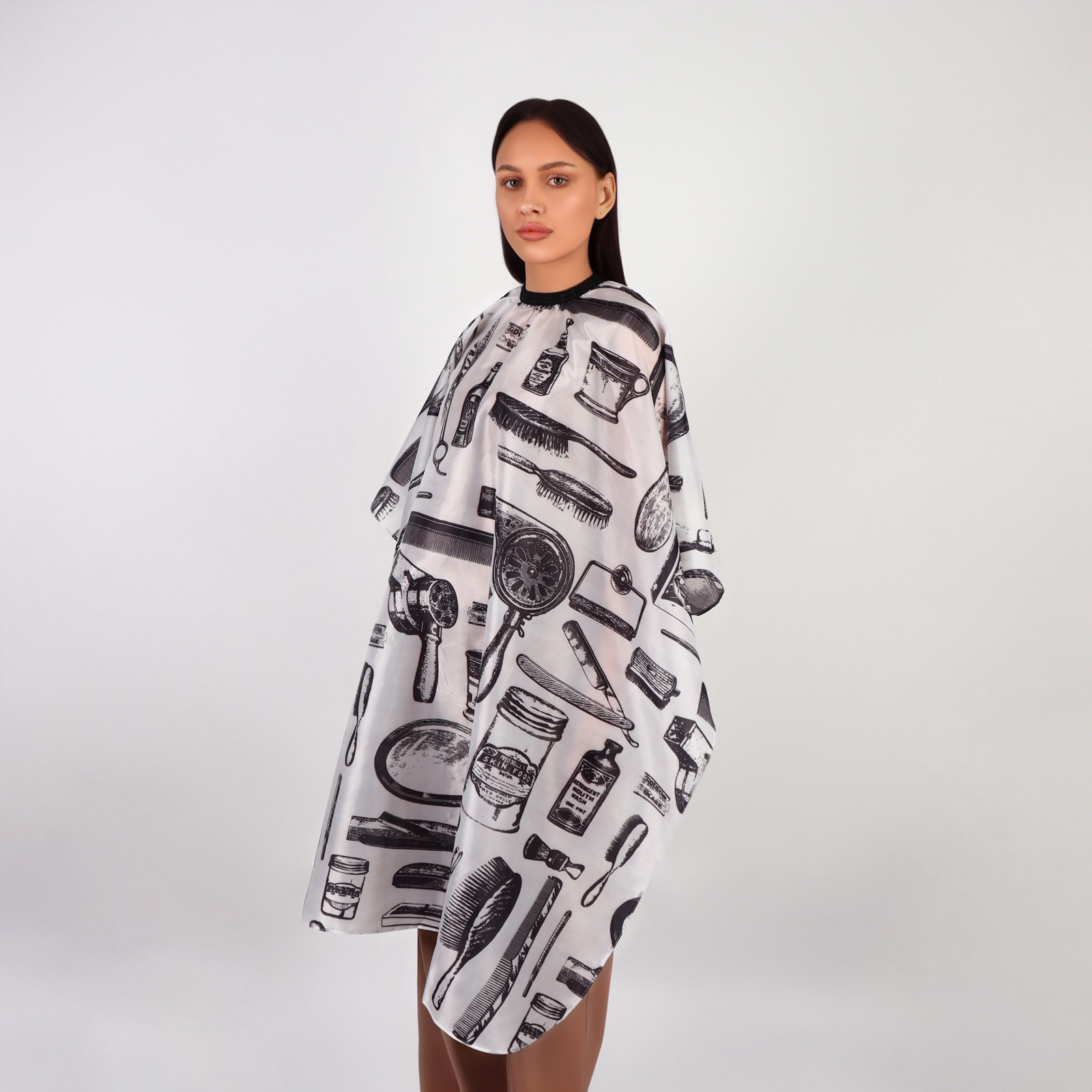 Пеньюар парикмахерский, белый, чёрный. Пеньюар защитит одежду клиента от попадания волос, воды, краски и других составов. Он мягко обхватит шею без утяжеления. Универсальный размер подойдёт людям всех пропорций. Не использовать высокие температуры для разглаживания пеньюара. Рекомендуется использовать метод отпаривания. Набор:Нет|Цвет:Белый|Для кого:Унисекс|Тип одежды:Накидка|Тип одежды:Фартук|Назначение:Рабочая одежда|Назначение:Сфера обслуживания|Ткань:Полиэстер|Особенность спецодежды:Влагозащитная|Особенность спецодежды:Грязезащитная|Рост, см:150 - 180|Сезон:Всесезонный|Вид упаковки:Пакет|Материал:Полиэстер|Страна:Китай  развернуть описание ▼
