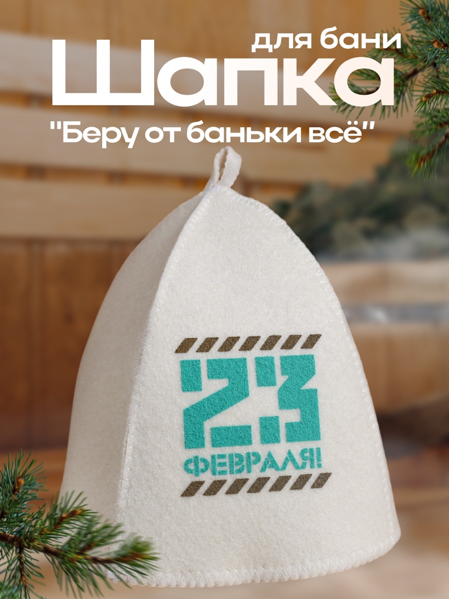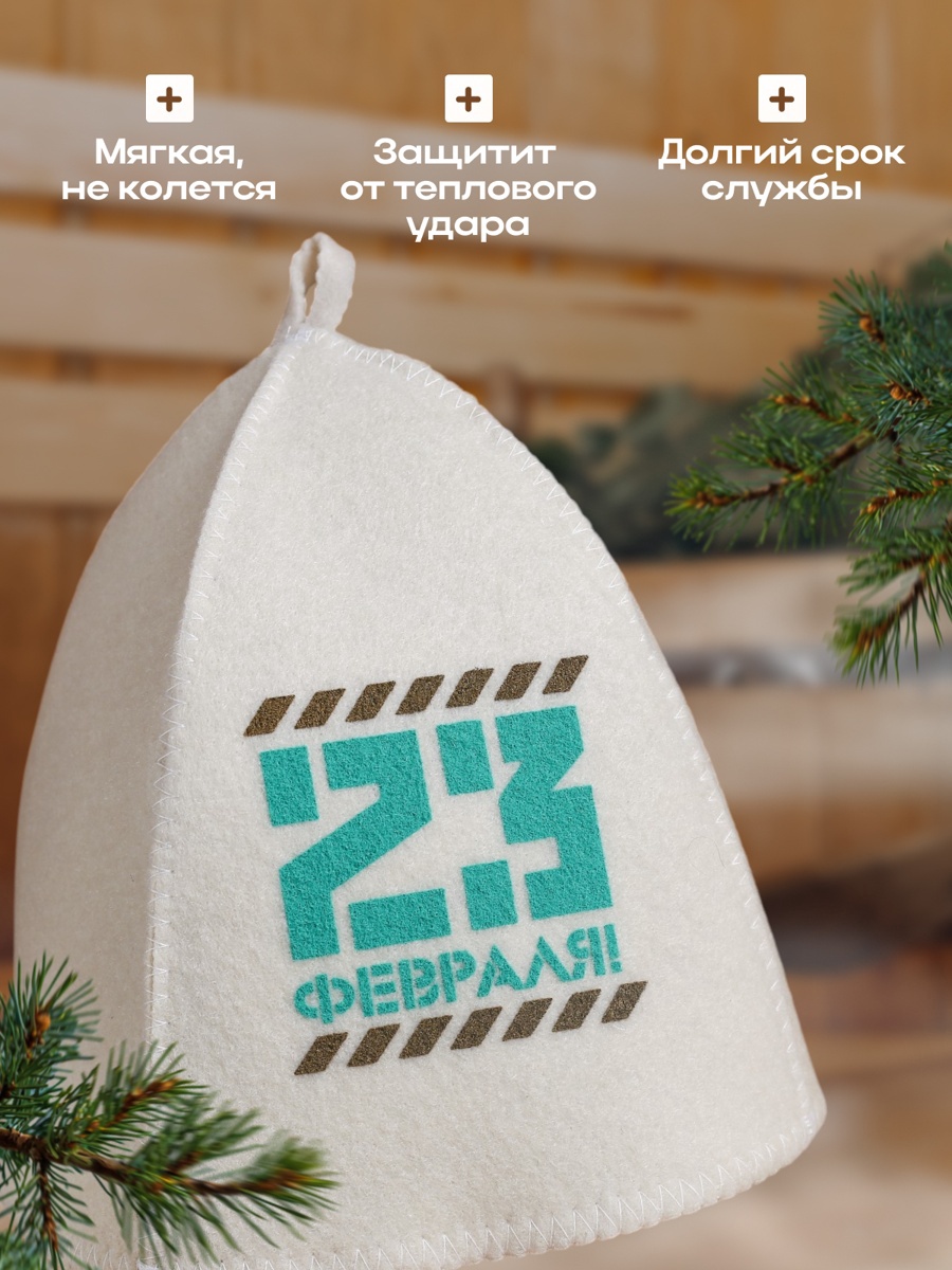 Шапка для бани и сауны, с шелкографией «23 февраля», полиэфир 70%, шерсть 30%, «банная забава»
