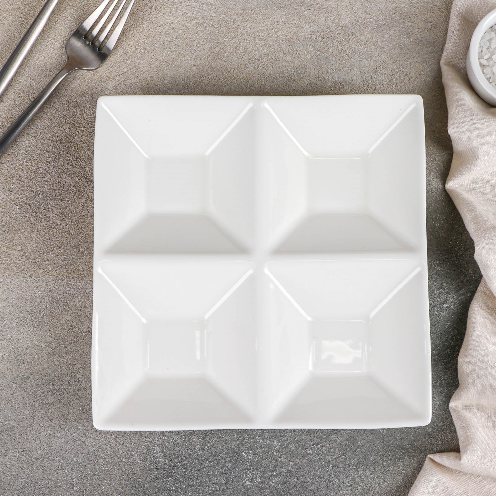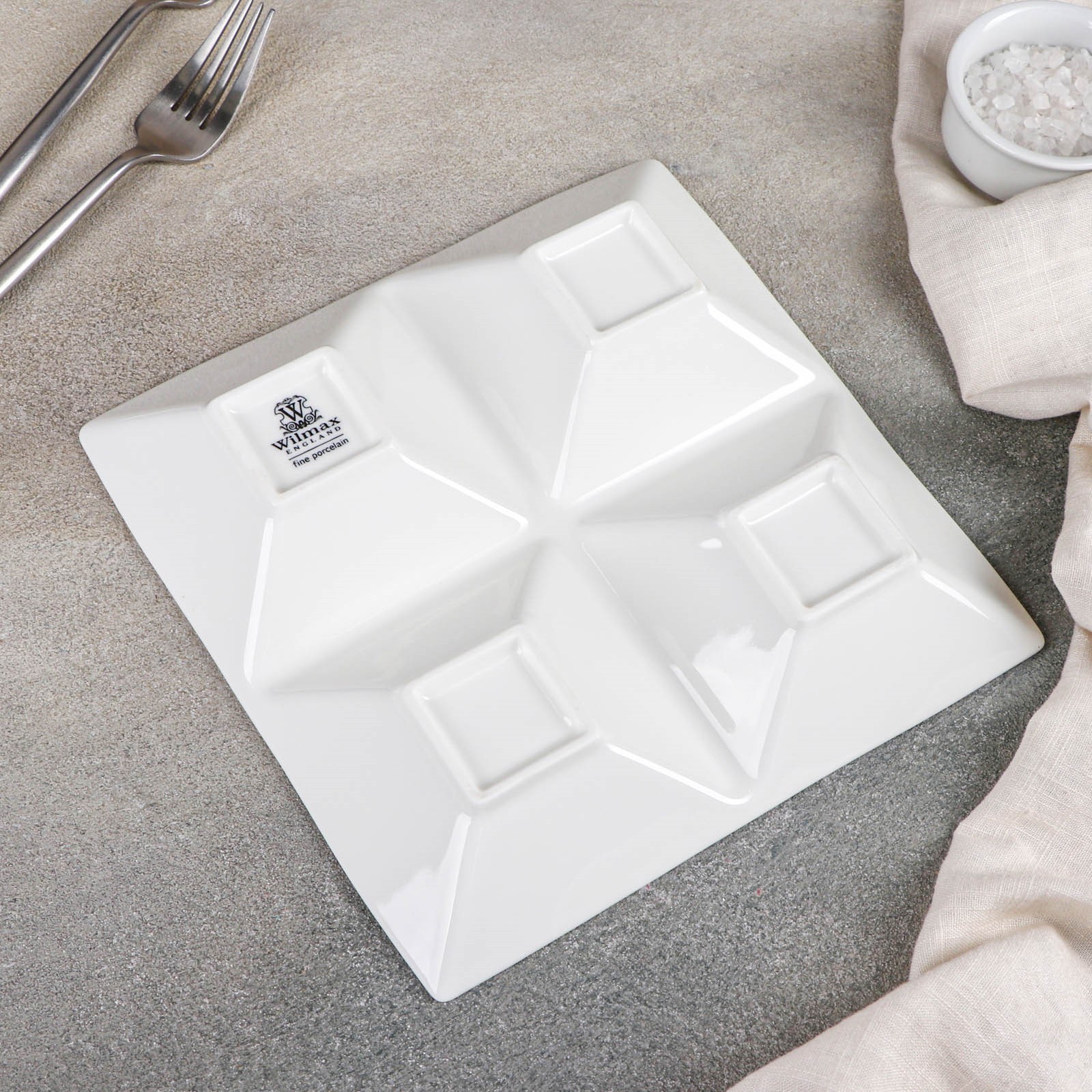 Менажница фарфоровая 4 ячейки Wilmax, 20x20 см, цвет белый