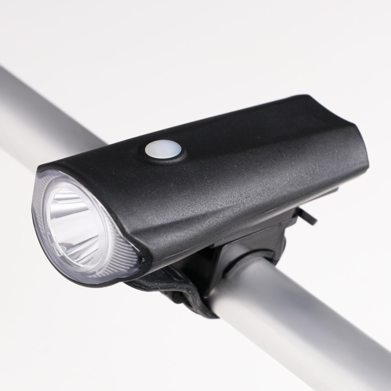 Фонарь велосипедный передний аккумуляторный "беркут", водонепроницаемый, 10 х 5 х 4.5 см. Передний фонарь для велосипеда — это необходимый аксессуар, который гарантирует вашу безопасность во время ночной езды на велосипеде. Он подходит для любого велосипеда благодаря простой и легкой установке. Фонарь обеспечивает яркую и дальнюю подсветку дороги, что позволяет ездить безопасно и комфортно. Фонарик работает от аккумулятора, что позволяет не зависеть от наличия электричества. Фара устанавливается на руль велосипеда и легко снимается для зарядки. Количество светодиодов: 1 Количество режимов: 3 Время автономной работы, ч: 3 Световой поток, лм: 150 Материал: Пластик Вид: Передний Влагозащита: Да Тип питания: От аккумулятора Способ зарядки аккумулятора: От USB Тип: Фонари  развернуть описание ▼