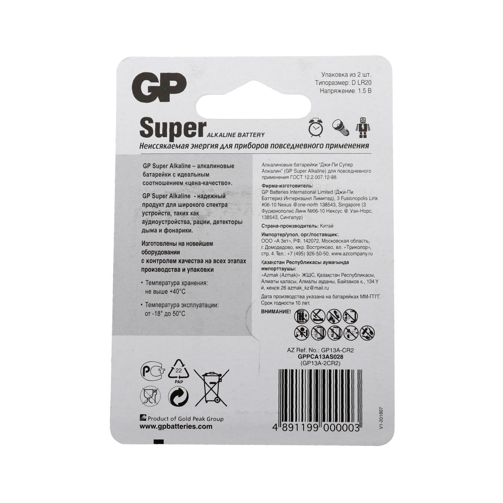 Батарейка алкалиновая Gp Super, D, Lr20-2bl, 1.5в, блистер, 2 шт.