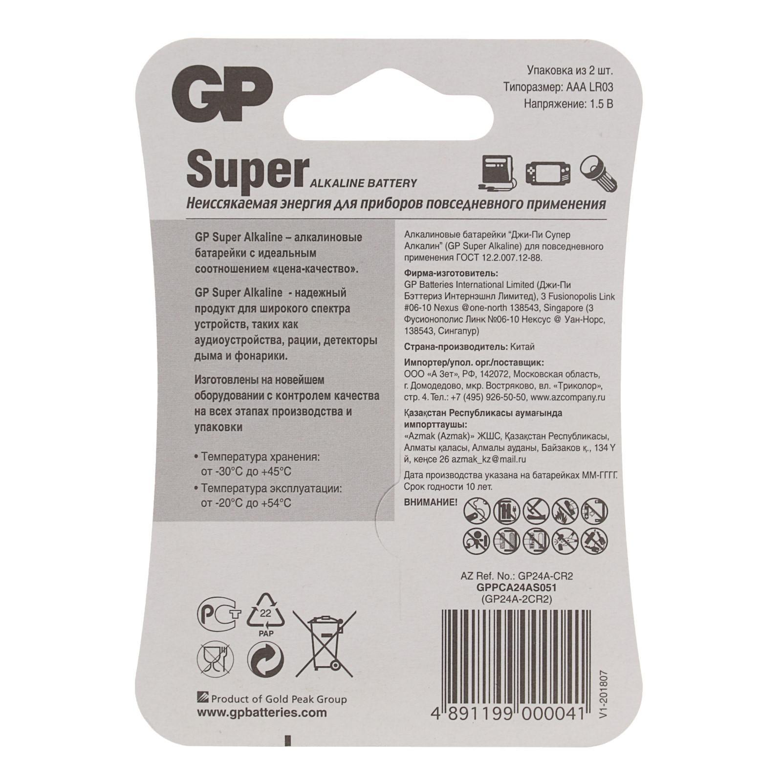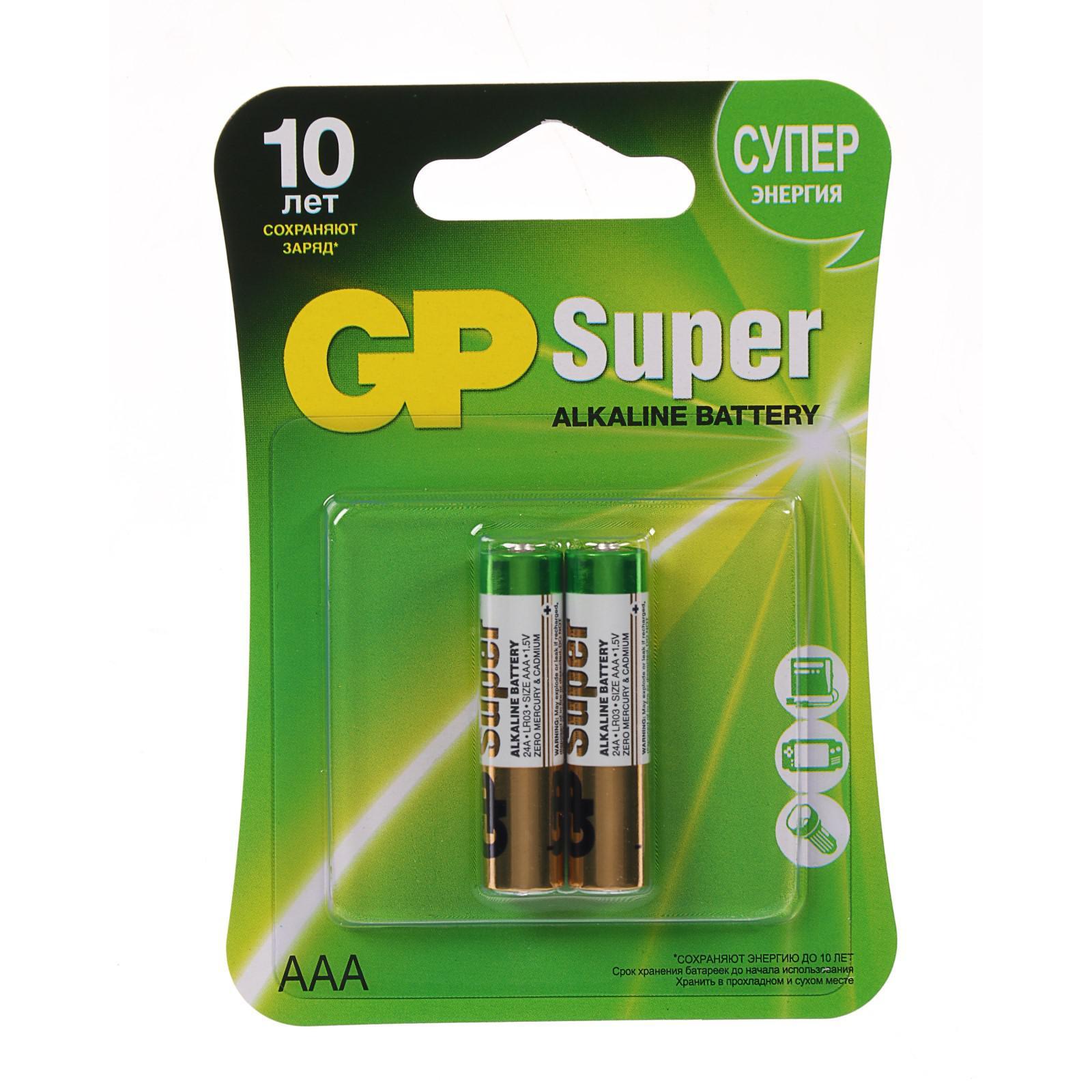 Батарейка алкалиновая Gp Super, Aaa, Lr03-2bl, 1.5в, блистер, 2 шт.
