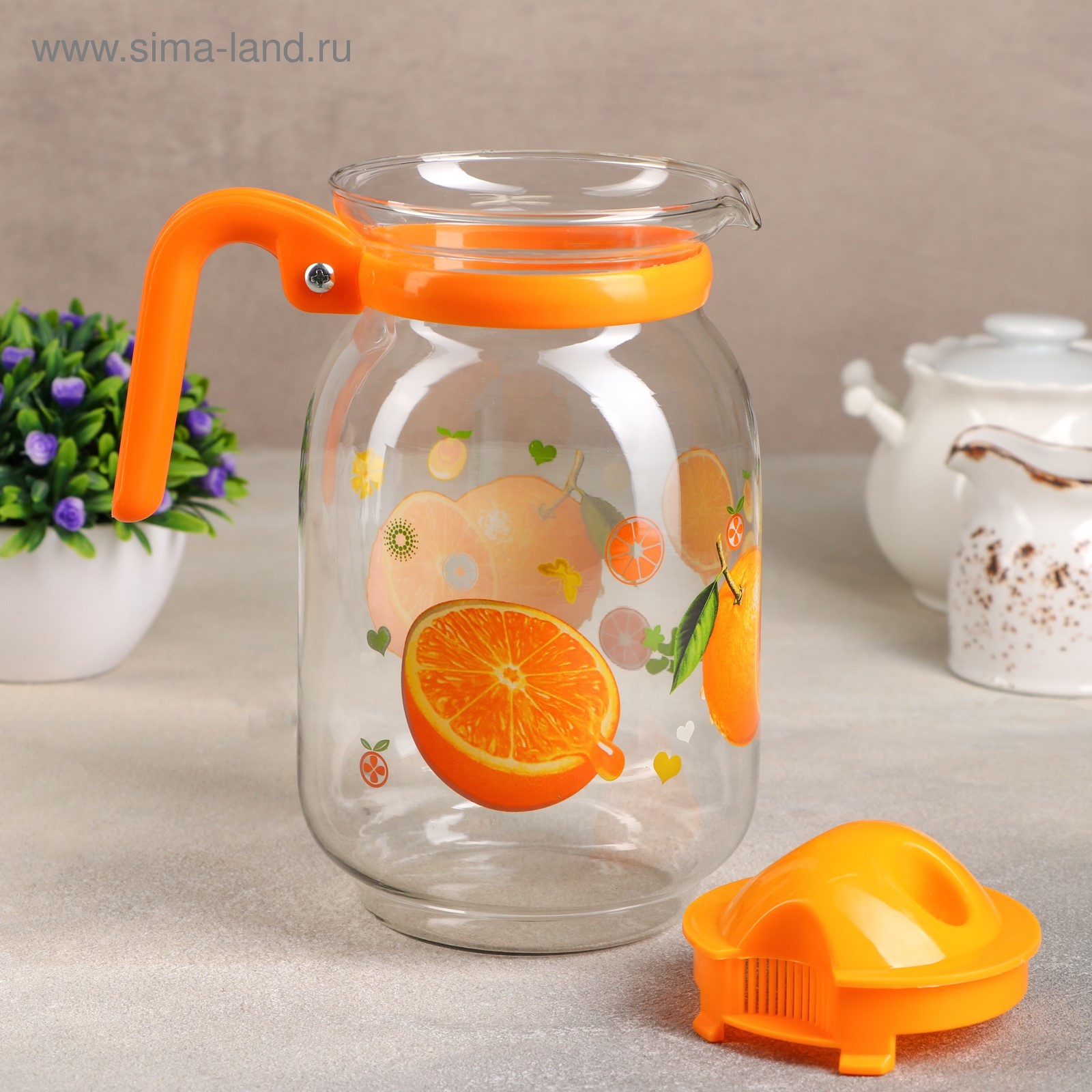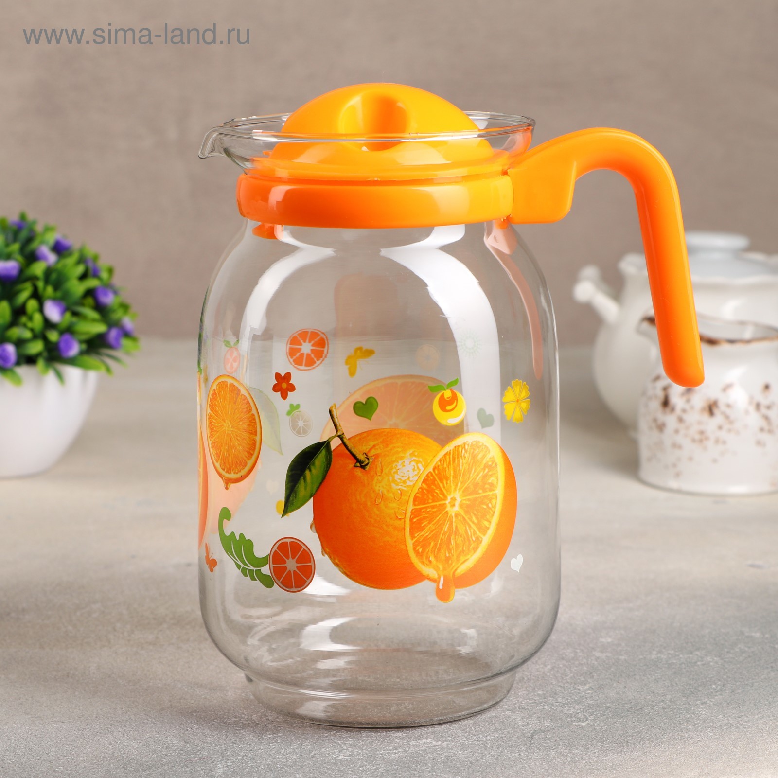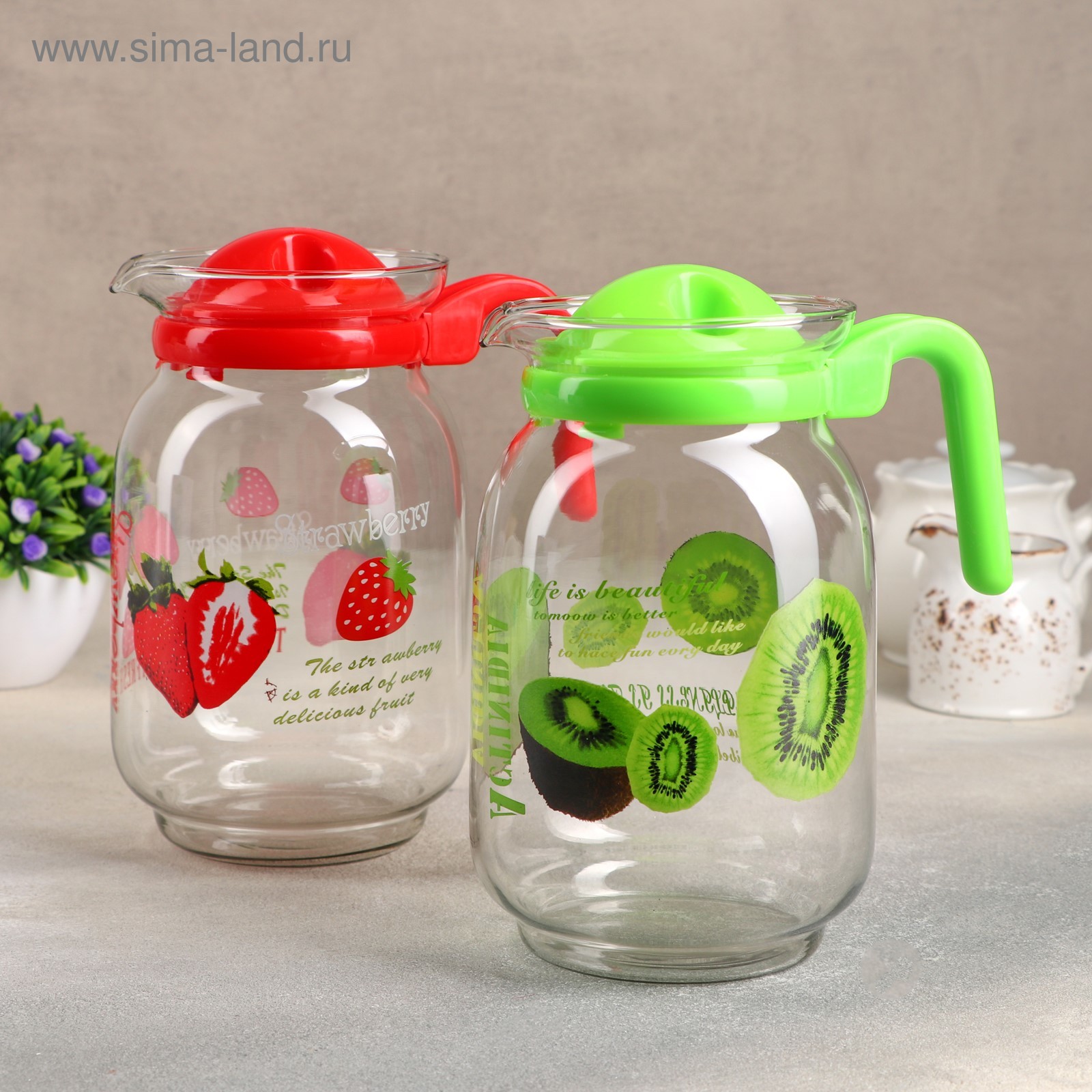 Кувшин для воды стеклянный с крышкой «фруктовый микс», 1,85 л, 12,5x22,5 см, цвет и рисунок микс