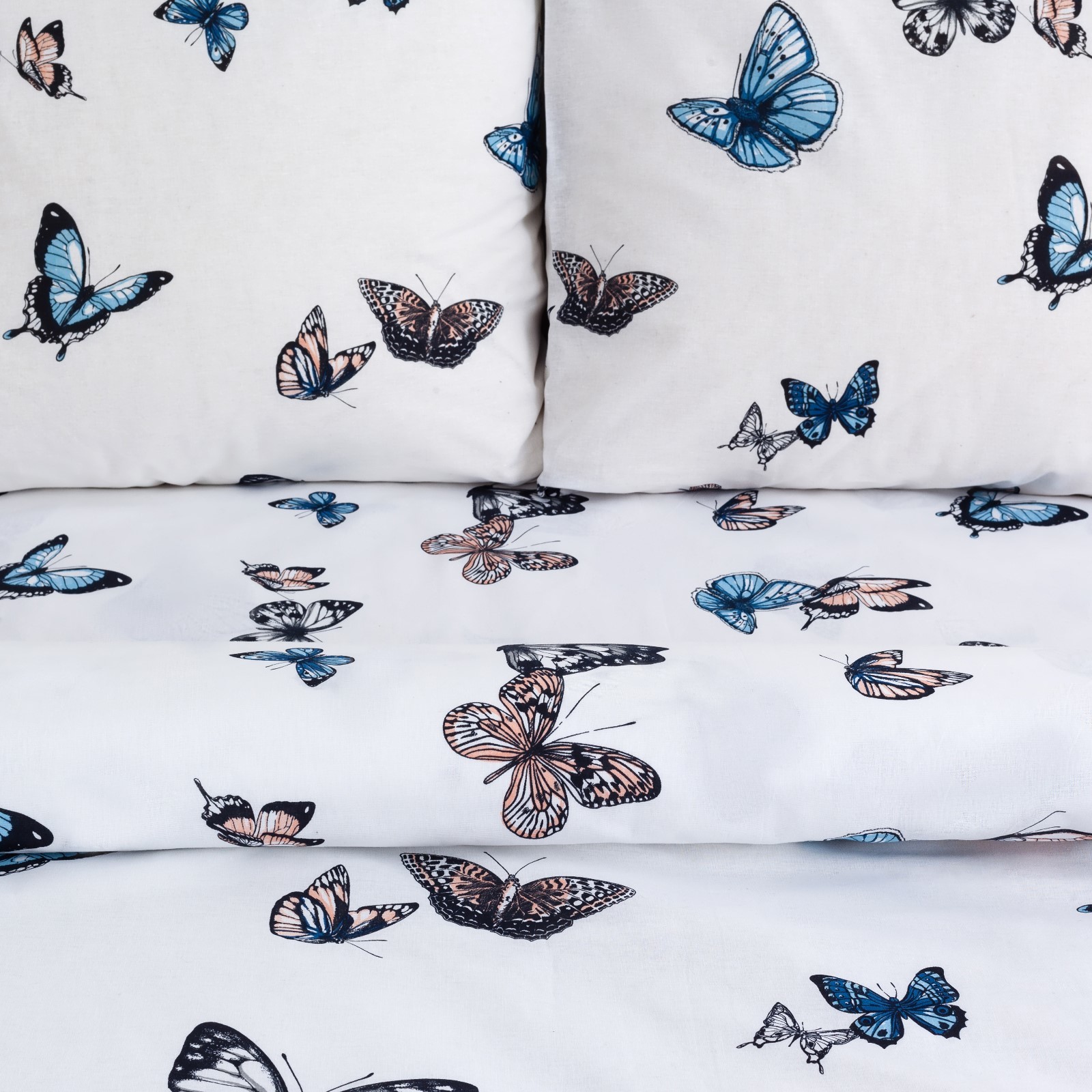Постельное бельё 1.5-спальное «этель. легкость», бязь. Постельное бельё «Этель: бязь» освежит интерьер любой спальни, внесёт в него новые краски и создаст в комнате неповторимый комфорт и атмосферу уюта. Чем хороша бязьx Комплекты из этой ткани — выбор практичных людей. Данный материал обладает массой положительных качеств. Он: приятный на ощупь;подходит даже для людей с чувствительной кожей;отлично пропускает воздух и впитывает влагу, поддерживая комфортный микроклимат в постели на протяжении всей ночи;неприхотлив в уходе;не даёт усадки после стирки.Особенности постельного белья Постельное бельё соответствует стандартам ГОСТ 31307-2005 и имеет европейский сертификат качества Oeko-Tex.09.HRU.73228.Изделия изготовлены из 100 % натурального экологически чистого хлопка.Плотность ткани составляет 125 г/м .Для нанесения рисунков использовались качественные европейские красители. Именно поэтому цвета надолго останутся яркими и насыщенными, а аллергия и раздражения пройдут мимо.Простыня без поперечного шва!Все внутренние швы дополнительно обработаны оверлоком, чтобы избежать естественного осыпания края.Вход в пододеяльник и наволочки оформлен клапаном, простыня без резинки.Комплектация: Пододеяльник, 143 215 см — 1 шт.; простыня, 150 214 см — 1 шт.; наволочка, 70 70 см — 2 шт. Рекомендации по уходу за изделиями: стирка при температуре не выше 40 °C без использования отбеливающих средств. Цвет:Белый|Размер наволочки, см:70 х 70|Ткань:Бязь|Плотность, г/м :125|Размер:1.5-спальное|На молнии:Нет|На резинке:Нет|Тематика:Бабочки|Вид упаковки:PVC-пакет|Тематика праздника:8 Марта|Декоративные элементы:Без элементов|Рекомендации по уходу:Не отбеливать|Рекомендации по уходу:Бережный режим глажки|Рекомендации по уходу:Стирка при 40 °С|Состав ткани:Хлопок|Количество наволочек:2|Размер пододеяльника, см:143 х 215|Размер простыни, см:150 х 214|Простыня в комплекте:Да|Особенности простыни:Стандартная|Вид застёжки наволочки:Клапан|Вид застёжки пододеяльника:Без застёжки|Страна:Россия  развернуть описание ▼