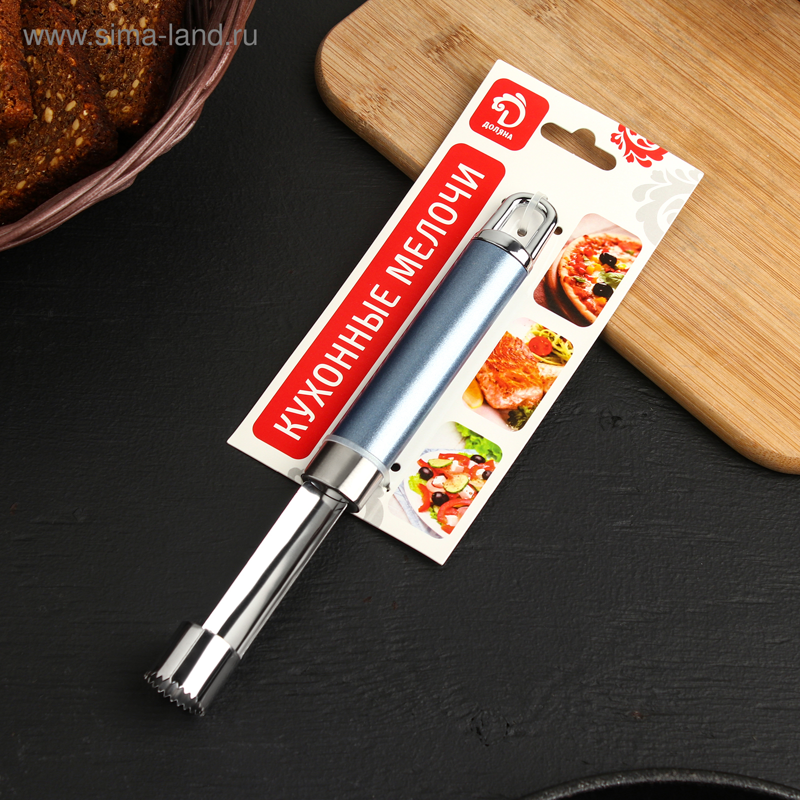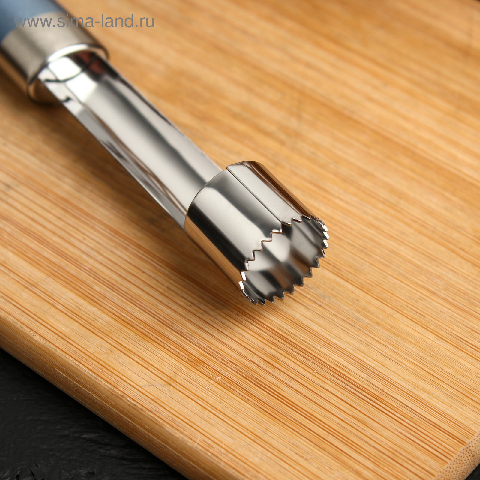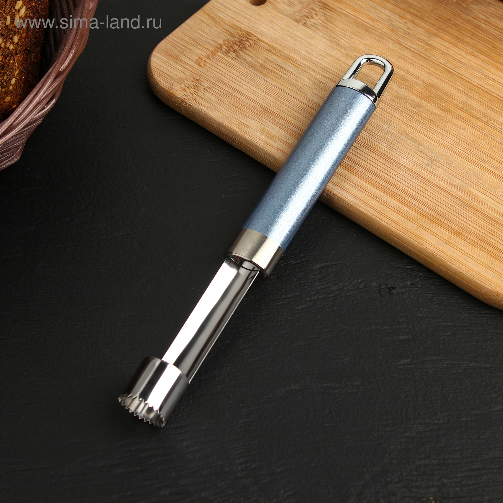 Нож для сердцевины доляна lаgооnа, 19 см, нержавеющая сталь, цвет голубой металлик. Нож для сердцевины – простой гаджет, который быстро избавит плод от косточек и плодоножки, оставив в центре аккуратное отверстие цилиндрической формы. Изделие имеет удобную ручку, которая не скользит в руке. Безопасное приспособление значительно облегчит процесс нарезки фруктов. Важно, что после такой процедуры яблоки и груши сохранят свой привлекательный внешний вид! Рекомендации по использованию: Разместите нож на поверхности плода над «хвостиком» в вертикальном положении. Надавите на ручку ножа, избегая перекосов лезвия. Чтобы качественно удалить сердцевину, лезвие должно пройти насквозь фрукта. Вынимая режущую часть, прокручивайте ручку ножа, чтобы удалить оставшиеся элементы. Материал ручки: Нержавеющая сталь  развернуть описание ▼